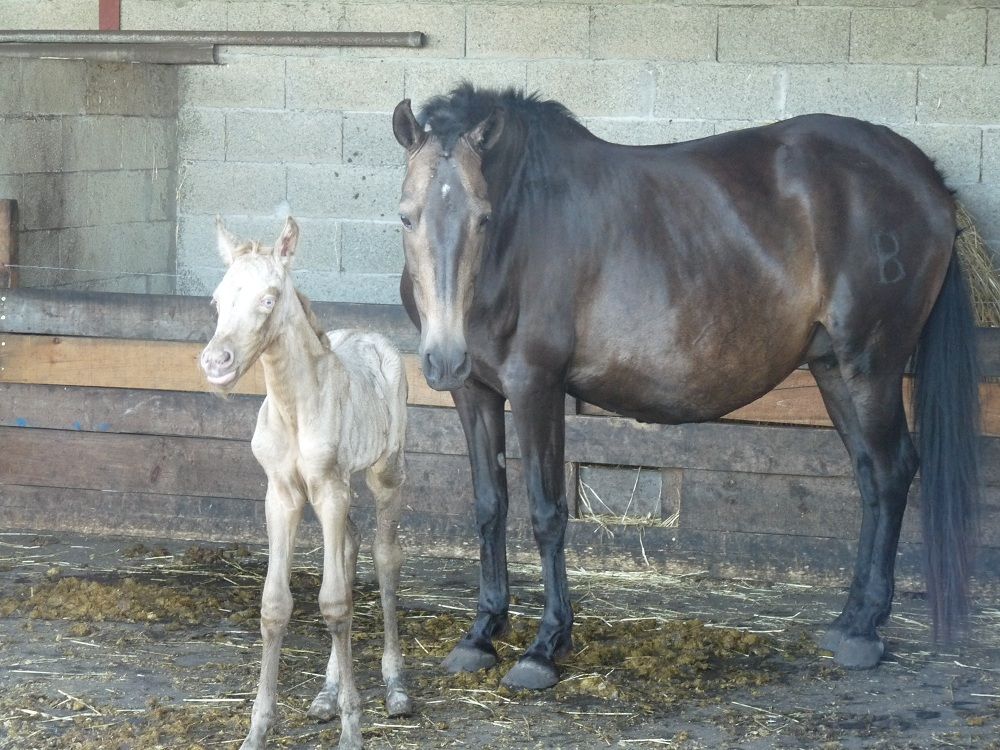 | Dire merci | Voilà, elle est née ce matin, sans aucun problème, elle va bien, la maman aussi, elle est adorable, fait déjà des calins et encore une fois pas besoin de photos, c'est le sosie de Tin'Sol! Franchement, au même âge, j'aurais du mal à les reconnaître ![]() C'est donc encore une perlino, elle a les yeux tellement clairs qu'ils sont presque transparents, c'est une merveille... si Valientephantasm ne l'avait pas réservée, je l'aurais gardée, ma première fille, je suis toute émue Elle est juste plus grande que lui, parce qu'il passait sous sa mère et elle, pas du tout En fait, mon apn m'a lâchée, donc je n'ai réellement pas de photos, mais vous avez de la chance, Elkana était venue voir son poupou justement ce we et elle a mitraillé la mini-Ley, un morceau de chance quand même! ![]() J'espère qu'elle en mettra tout à l'heure... ![]() |