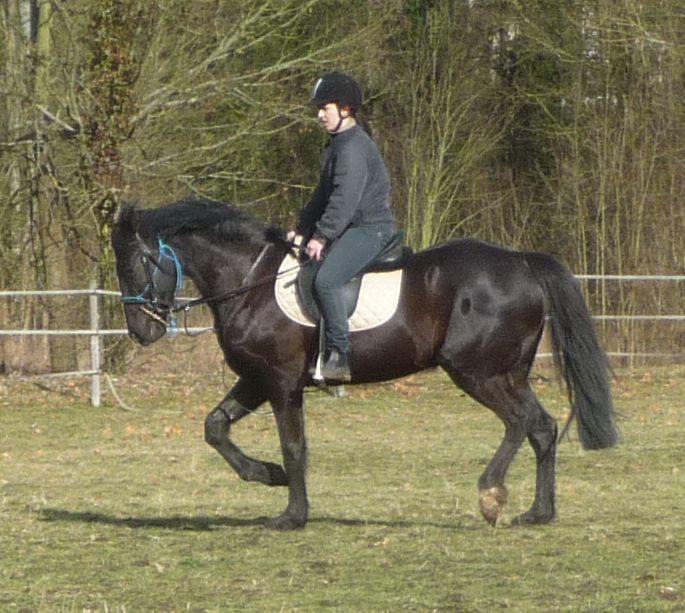 | Dire merci | Je suis en formation depuis début janvier du coup Pépère ne fait pas grand chose depuis que les sols permettent le travail!! je le longais le week end et le montais un petit peu. Je suis en vacances jusqu'au 9 avril du coup je le travaille tous les 2 jrs une fois longe une fois monté!. Malheureusement les sols ici ont vite séché.... qu'est ce que j'aimerai etre en pension avec carrière!! Sinon hier j'ai aidé une personne à essayer de rattrapper son entier.... eh oui les hormones travaillent et mr ne veut plus se laisser approcher..... |