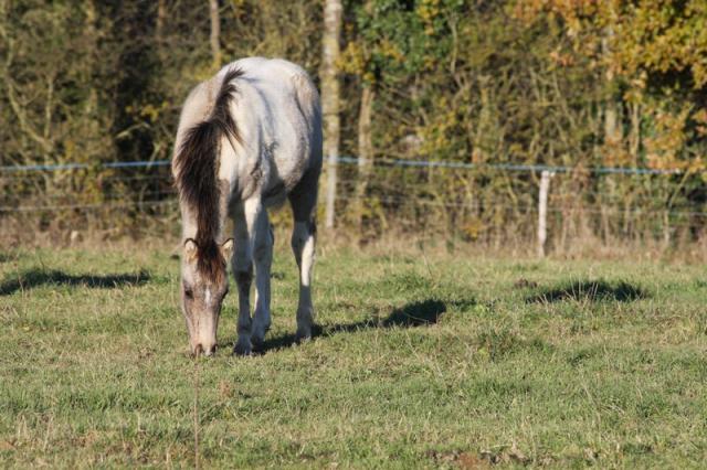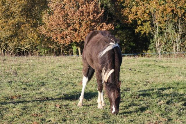 Dire merci | cowboy: il est naviculaire +++, après avoir essayé plein de traitements (ferrures, vaso dilateurs, tildren, pieds nus...) sans succès, même s'il était à la retraite il souffrait trop, alors je l'ai fait névrectomiser pour qu'il vive encore quelques années sans souffrance. Il est retourné samedi au paddock (il avait fait une tendinite juste après l'opération). Il a ses potes à côté de lui, il a le moral!