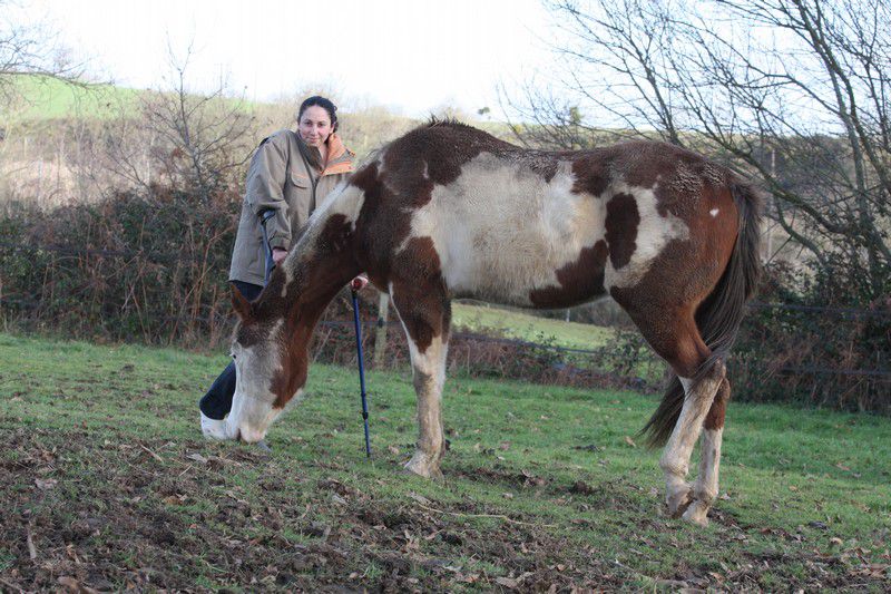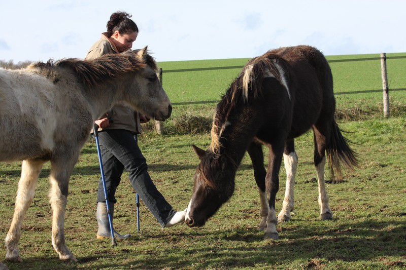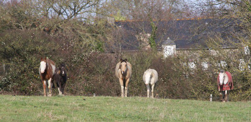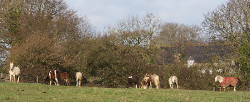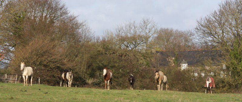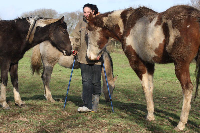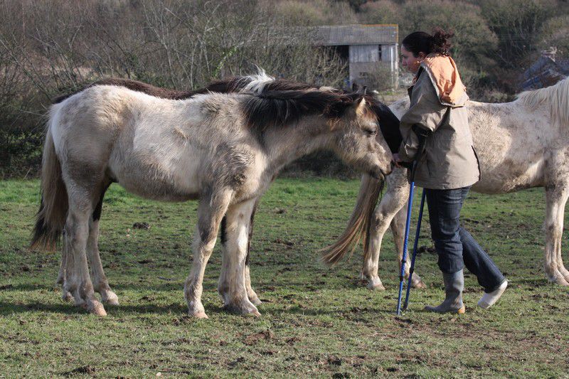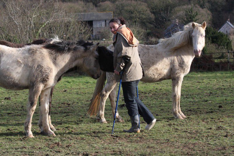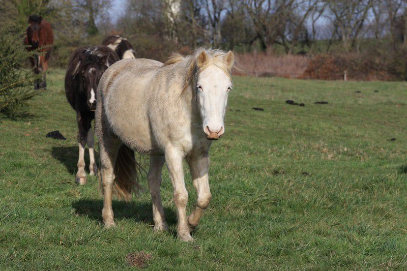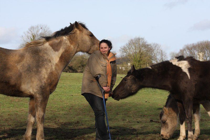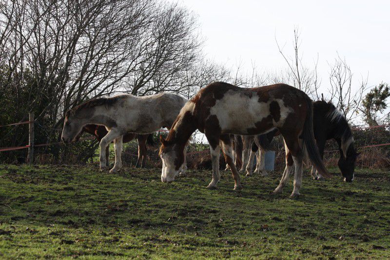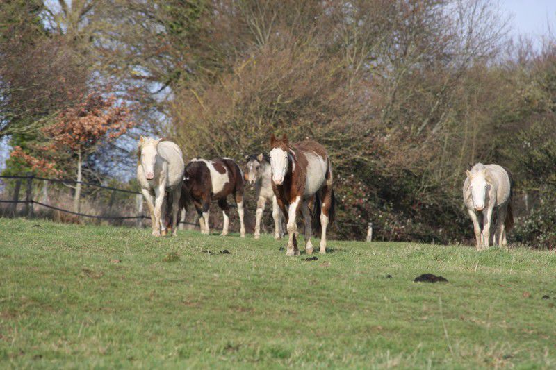 | Dire merci | Par cette belle après midi presque printanière, un troupeau coloré broutait paisiblement:![]() Soudain, ils levèrent la tête et s'approchèrent ![]() ![]() Une jolie ovéro se détachait du troupeau pour venir à ma rencontre ![]() Elle s'avança, majestueusement ![]() Suivie de près par sa copine baby en quête de carottes ![]() Suivait une jolie pouliche chocolat ![]() Et son petit frère ![]() Une appaloosa, contente d'être en vacances s'approcha aussi ![]() La créature qui venait à leur rencontre avait 4 pattes, deux étaient fines et bleues, une était plâtrée ![]() Après l'avoir flairé, ils se redirent compte que ça ne se mangeait pas! ![]() |