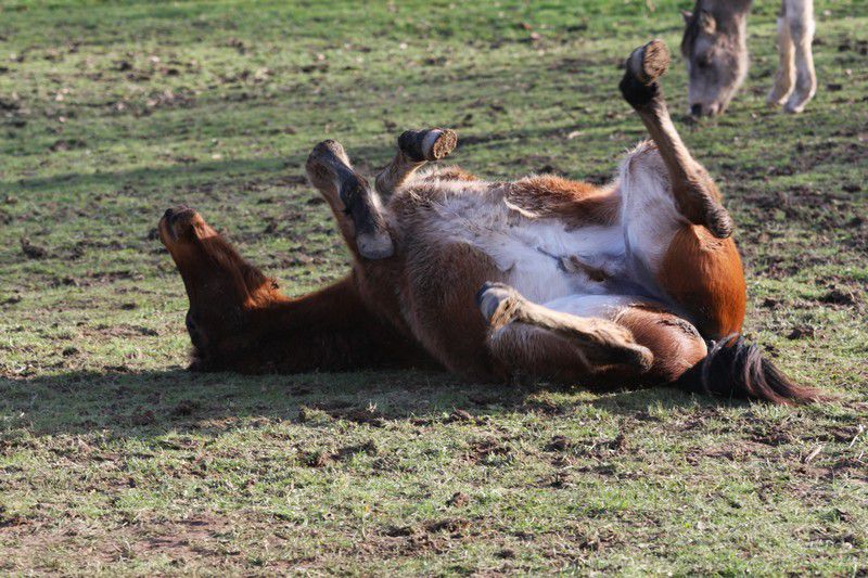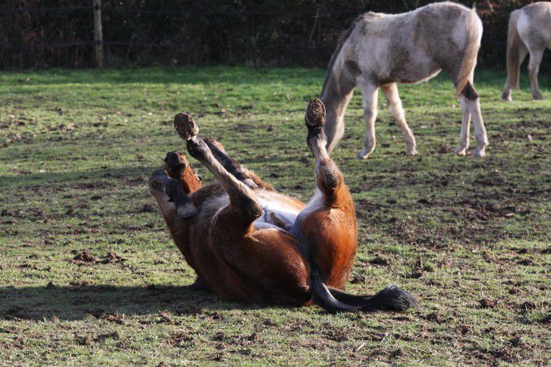 | Dire merci | Après cette inspection, le petit prince pû s'approcher![]() Sa maman était toute belle et ronde ![]() la petite pouliche chocolat trouvait bizarre cet humain et son pied, c'était bien meilleur ![]() la belle ovéro ne s'intéressait plus à cette créature, elle préférait de loin le seau à lécher ![]() la pouliche chocolat et sa copine cherokee elles s'y affairaient ![]() Le petit prince demanda à sa maman ce qui se passait ![]() Elle lui expliqua alors que des fois les humains montaient sur des congénères pas très coopératifs ![]() La nouvelle fit rire le petit prince ![]() tellement, qu'il se roula par terre! ![]() ![]() |