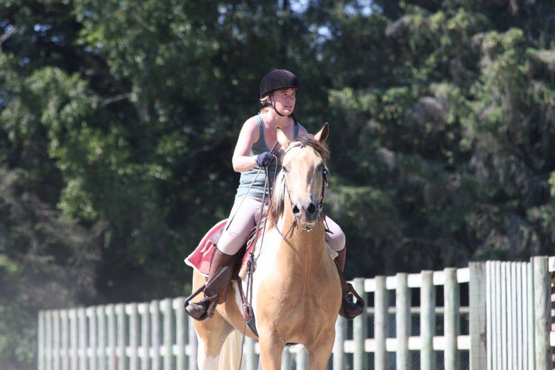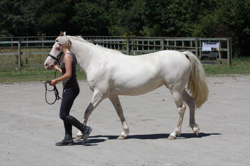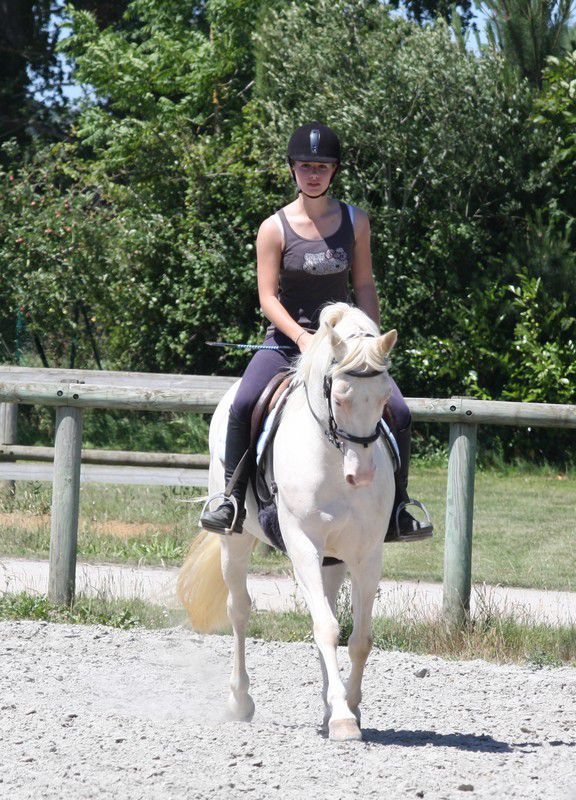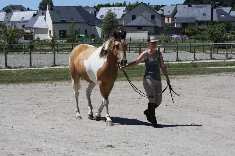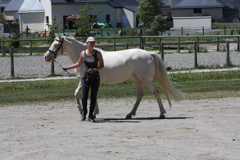| Dire merci | Les allures (pour les adultes). C'était l'épreuve que je redoutais le plus pour Boggies, elle est assez verte dans le travail (2 mois de travail sous ma selle), elle n'a pas l'habitude d'être avec des chevaux qu'elle ne connaît pas, encore moins en carrière (j'ai juste un p'tit coin plat en herbe à la maison pour bosser), et bien elle m'a épatée, elle a été très très bien, très aux ordres et elle nous a montré ses jolies allures. le juge a demandé un allongement au trot, wha j'étais abasourdie (d'habitude je suis dessus je la vois pas se déplacer...). Elle s'est assez bien entendue avec marjo sa cavalière du jour (qui monte très très bien il faut l'avouer!). bien partout et un très bien pour "attitude sous la selle, absence de défense". Pour une jument de 8 ans censé avoir été que poulinère c'est pas mal!![]() ![]() Monsieur Sweety, égal à lui même, tranquillou. Comme je m'en doutais ses mini allures rasantes n'ont pas plus. ![]() l'est pas belle ma QH? ![]() ![]() |