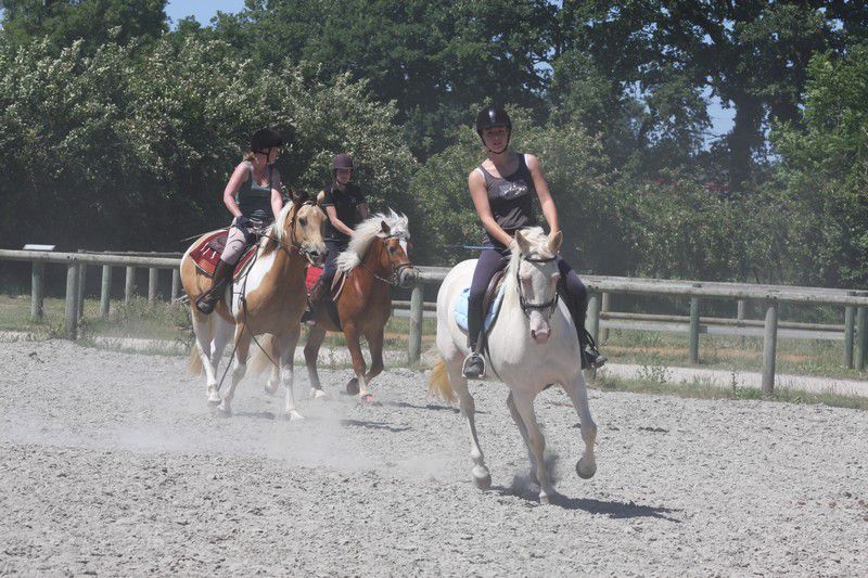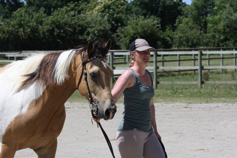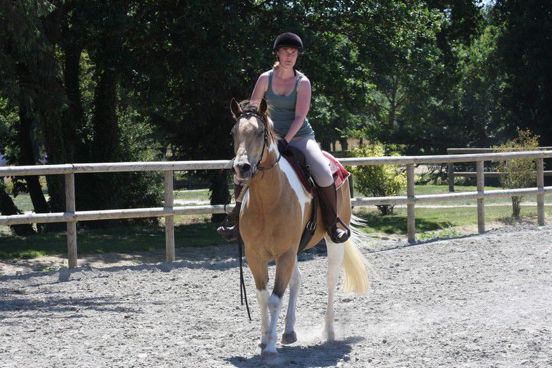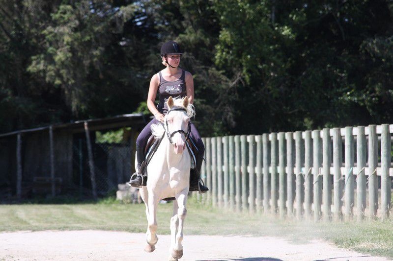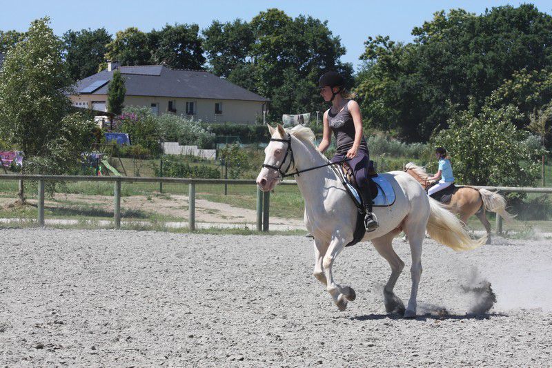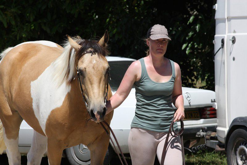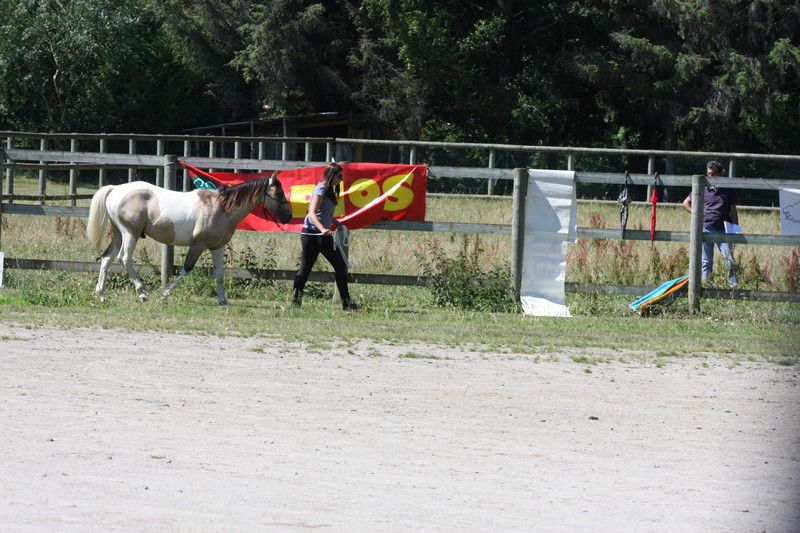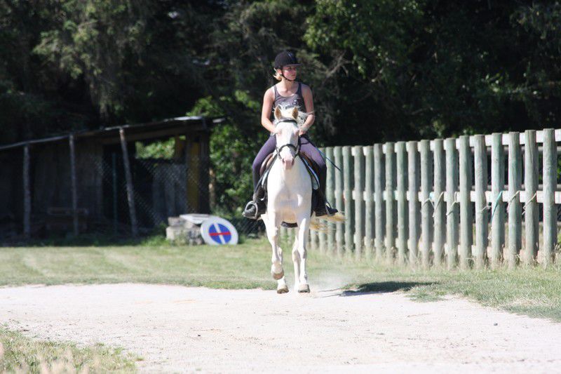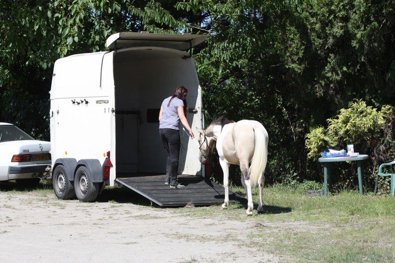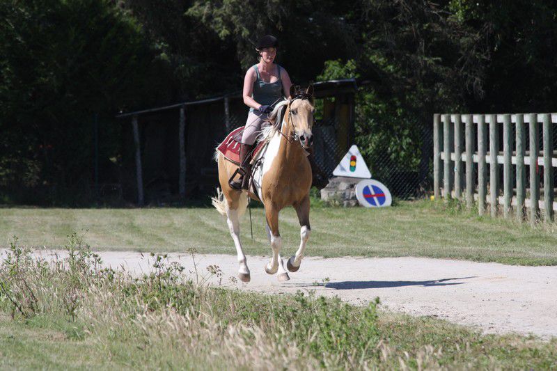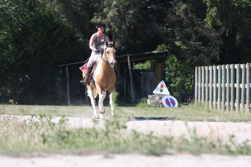 | Dire merci | Galop + arrêt d'urgence pour les adultes (on voit une parie de la difficulté "chantier":![]() ![]() Sweety il sait faire, j'avais donné le mode d'emploi du stop à sa cavalière qui s'est bien amusée (ça fait des sacrées sensations!) ![]() Boggies au galop: ![]() ![]() il y avait: van, attache + pieds, montoir, bâches, passage étroit + branches basses, table + parasol, chantier, passerelle, 1 gué, fossé, 2ème gué, plan descendant. Bah Sweety il a pas voulu monter dans le van avec Sabine le vilain (dans mon van il grimpe tout seul, et je l'avais entraîné la semaine d'avant avec un van à pont il est monté comme une fleur...) Sinon tout s'est plutôt bien passé, 3 chevaux emmenés, 3 chevaux labellisés! il n'y a pas eu d'élite, juste 2 sélection junior (Anoki et un autre), et 2 ou 3 sélection sénior (dont Boggies). Ca fait une famille entière de sélection: Winona (l'année dernière, Anoki et Boggies la maman). Sweety est qualifié, je suis contente de lui quand même (sauf du van il a clairement abusé!). Boggies et Anoki ont ramené en plus de la plaque "sélection" une plaque "1er prix"... Un grand merci aux cavalières qui ont montées Boggies (Marjo) et Sweety (Sabine), à ma groom (Marie) à mon papa photographe et aux nouveaux propriétaires d'Anoki qui sont venus m'aider et s'occuper de lui, tout le monde est resté malgré la chaleur étouffante. J'ai dû faire 2 voyages à chaque fois en plus. mais bon c'était une bonne journée! Anoki a trouvé une nouvelle famille, des gens très bien, avec déjà des chevaux, et qui habitent vraiment pas très loin, donc je pourrais le voir souvent... |