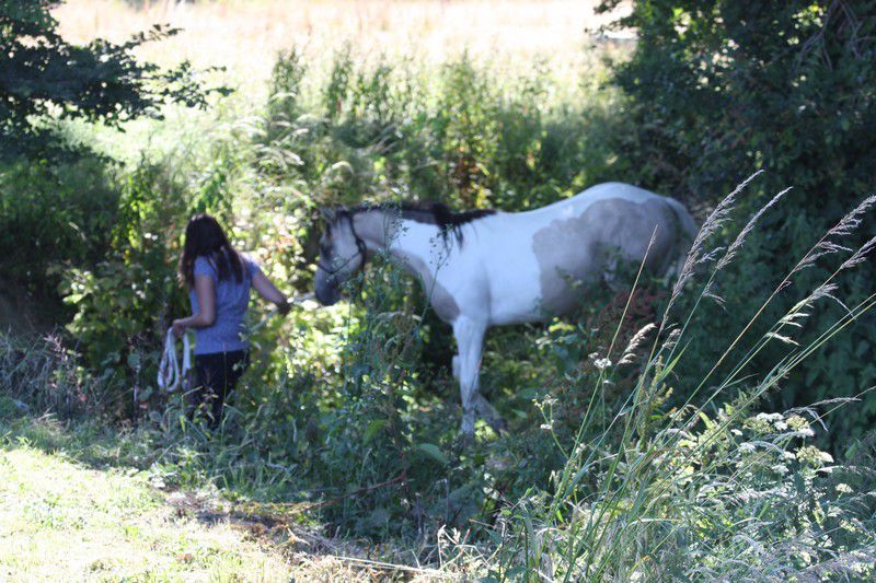 | Dire merci | Boggies regarde sa progéniture avec fierté![]() Sweety a des choses plus interessantes à faire! ![]() Bébé a peur de rien ![]() 1er gué (y'en avait un 2ème, une douve très raide, Sweety y est allé en 1er, de la vase jusqu'au jarret, donc j'ai préféré que Boggies n'y aille pas et avec Anoki j'ai fait quelques pas et je suis vite remontée sur la rive, les bipèdes ça tient pas trop dans les pentes raides...) ![]() |