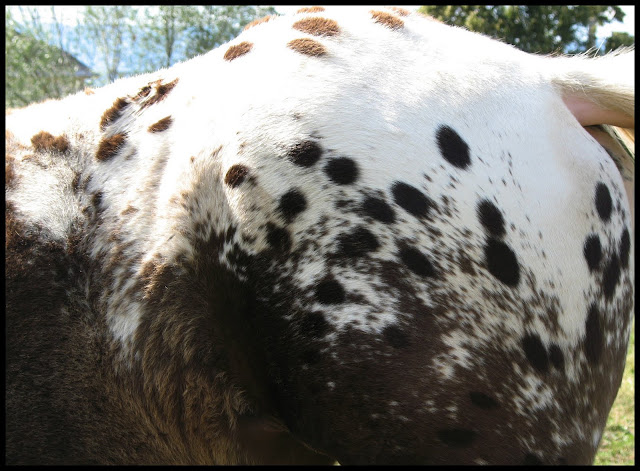| Dire merci | J'attends (plutôt ma juju), un croisé apaloosa x paint...on verra si un paint apaloosa va sortir come la tienne...![]() |