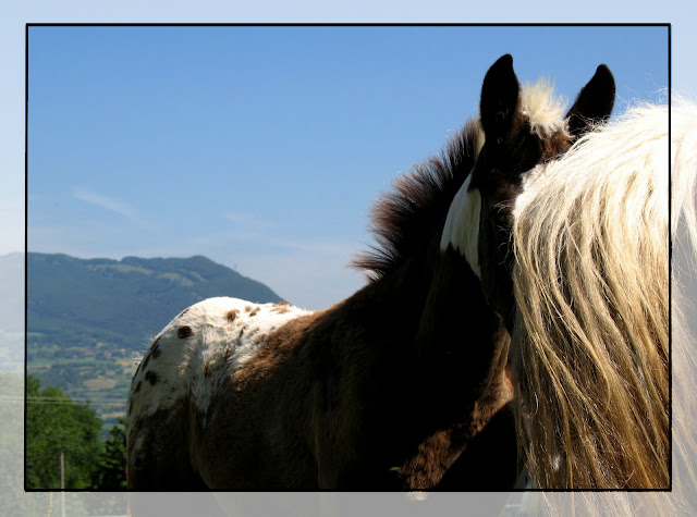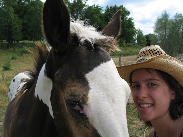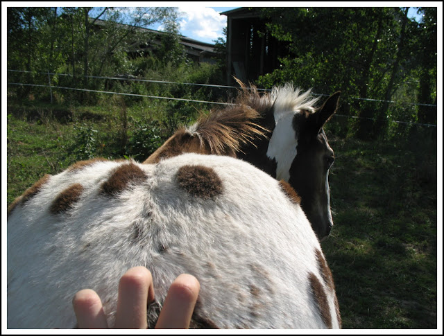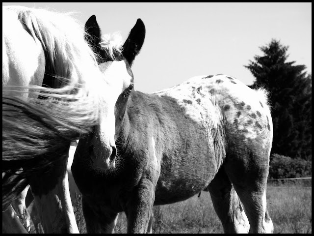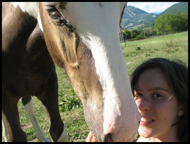 | Dire merci | Elle est né au sein d'un immense troupeau vivant en semi-liberté, avec des chevaux magnifiques mais peu entretenus et peu (voir pas du tout) manipulés. La miss était donc plutôt timide lorsqu'elle est arrivée, aux côtés de sa mère, aux écuries du Florana où se trouve Idem. Elle avait un peu plus de 3 mois. Une fois le bouleversement du déménagement passé, Aloha a laissé la curiosité l'emporter Elle m'inspecte ![]() Et adopte mes gratouilles |
