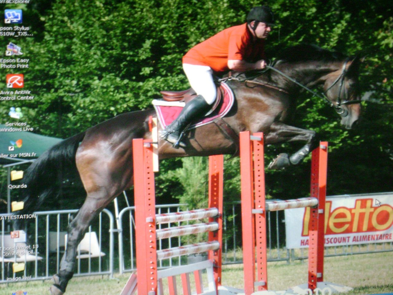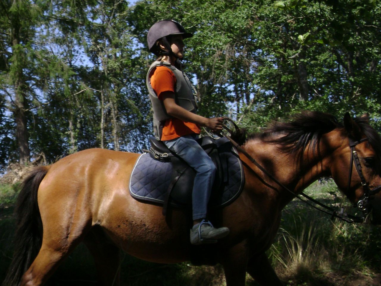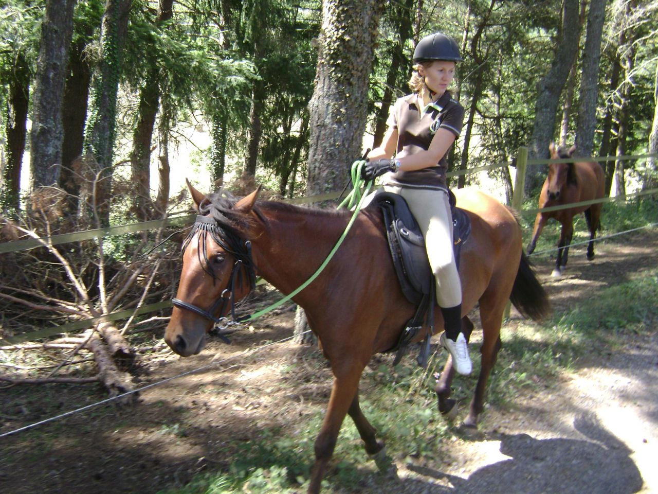 | Dire merci | Il faisait très beau et chaud et Titounette a proposé de nous prêter des montures afin de faire une promenade dans les forêts environnantes. Nos montures : des selle français d'1,75 m pour moi et d'1,80 m pour Florette du forum !!! Peu habituées (plus du tout en fait) de monter de si hautes montures, on a tiré à la courte paille en roulant des yeux effarouchés par derrière Titounette pour ne pas montrer notre émoi... Ma monture : Sisco, 4 ans, de la famille de Dollar du Murier (fils je crois mais pas sûre, Titounette rectifiera) ![]() |
