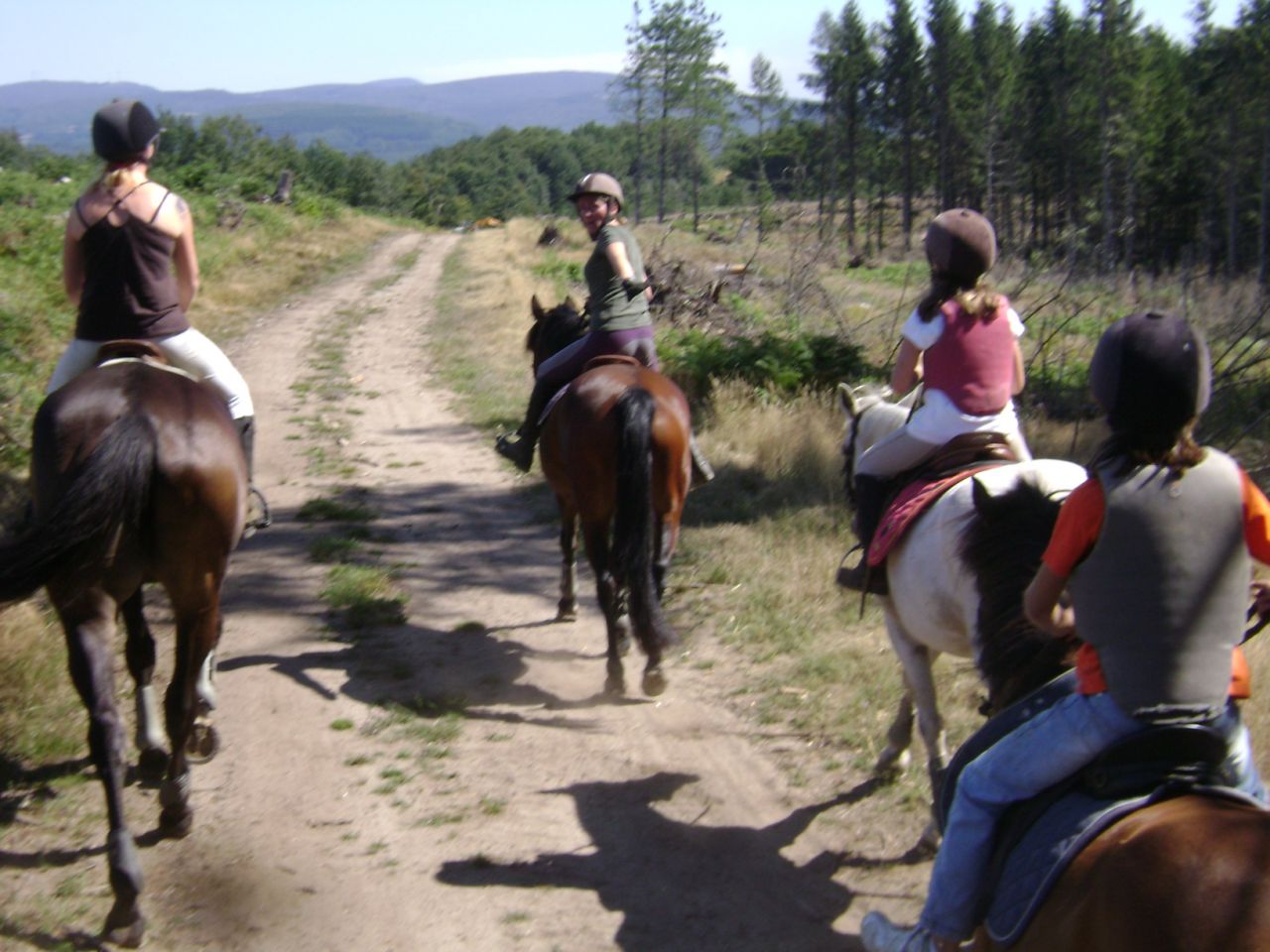 | Dire merci | Nous avons fait une balade magnifique dans des paysages sauvages du Tarn, non loin de La Salvetat et de Castres - pour ceux qui connaissent- , les selles français : ça déménage au galop et j'ai dû me souvenir de ce qu'était une selle anglaise, de trotter et galoper en équilibre... , les poneys nous suivaient à vive allure , tous devant et Tartine fermait la marche...![]() |