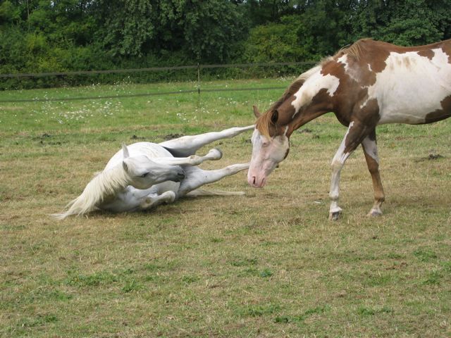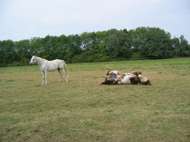 | Dire merci | Je viens de découvrir ce post, et afin que l'histoire de Diamond soit complète je rajoute une photo de sa pouliche de l'année, superbe avec une oreille tachée...![]() derrière vous apercevez Quigon qui est resté dans les Landes... son passage chez moi cet été, en attendant que Cici la récupère, elle avait bien sympatisé avec ma jument et jouaient à celle qui se roule le plus ![]() ![]() ![]() ![]() Et je confirme cette jument est un ange de douceur et de gentillesse, elle a quitté son poulain sans raler, a embarqué en douceur, voyagé comme une fleur, s'est installée chez moi gentiment... bref un amour de cheval pour que ça guérisse vite ! |