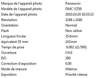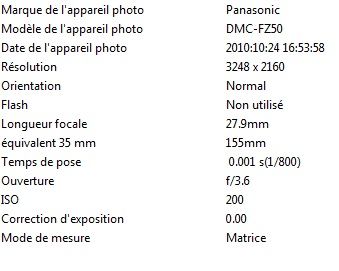 Déconnecté | Moon et Qualy perso je peux pas t'aider mon apn m'a été plus ou moins offert et je suis pas encore assez douée pour me mettre a regarder ce qui se fait d'autre ! Carodadou clic droit propriété et faut regarder dans je sais plus quel onglet et tu as tout tout tout sur ta photo ! Faenix on est plusieurs ici a avoir un bridge donc pas de souci tu peux rester et nous montrer ce que tu fais ! Charline c'est dommage les photos noir et blanc on a l'impression qu'elles sont floues ... |