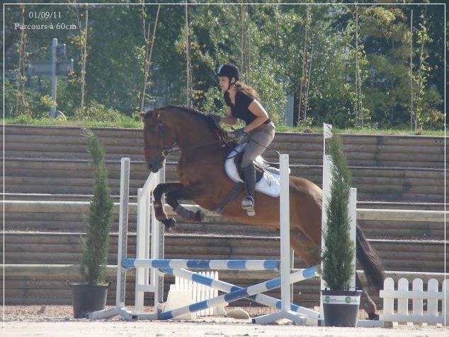 | Dire merci | bah oui qu'elle jump la grosse Afi jeudi, entrainement CSO ! Bakara est adorable, on l'a fait sauté en lib auj, super intelligente sur les barres ![]() pour le fait qu'on recoive de super PRE chez nous, c'est parce qu'on à un accord avec un éleveur espagnol, qui nous file des PRE, ont les vends, et quand on en vend un, il nous en file un autre ! grisette remplace afi au club quoi ! sinon, oui les espa c'est grave polyvalent, y'a qu'à voir afi, dress, saute, cross, randonne ! d'ailleurs grand nouveauté, jlui ai appris le début de la jambette montée en vue de lui apprendre le pas espagnol !! |