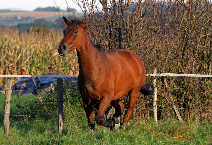 | Dire merci | .... VICKY!!! hé non désolée, ce n'est pas aujourd'hui que j'annoncerai la couleur de A... ![]() Mais je tenais à vous montrer des photos récentes de celui qui est et restera le number one de mon coeur résumé d'une petite séance photo dimanche dernier, au coucher du soleil ![]() Les deux zouaves débarquent depuis leur abri ![]() J'adore ce cheval, il suffit qu'il voit un appareil photo et hop! Il est lancé! ![]() (photo prise lors du premier galop!) ![]() et quand il fait la course avec Nadja... hum ![]() faut dire que la vitesse, c'est pas son fort...il est plutôt dans les allongements...jolis mais peu efficaces ![]() mon bogoss préféré ![]() ![]() bon, promis, j'arrête avec les après ![]() |