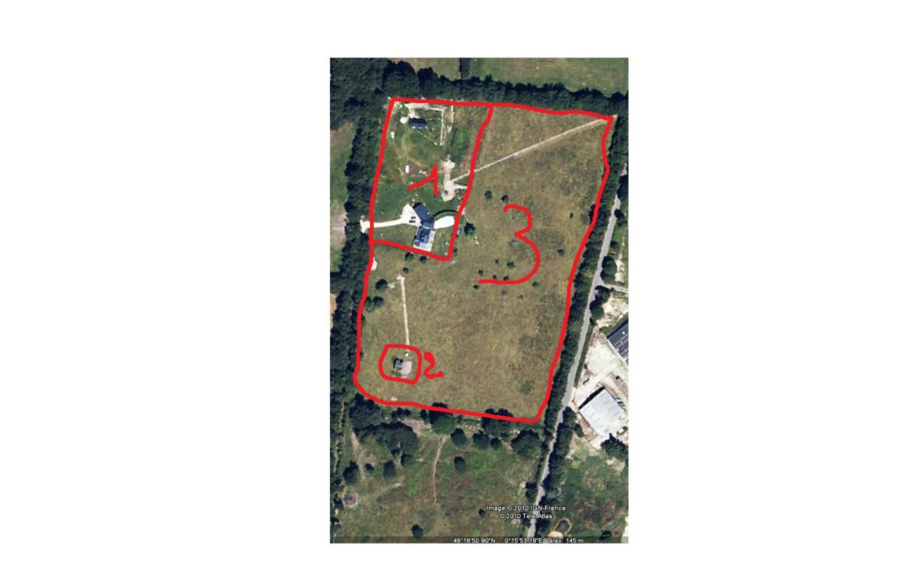 | Dire merci | [url=https://www.1cheval.com/membre/services/photos/images/72800.jpg] ![]() [/url] en 1 la maison en 2 les "boxes" et en 3 le grand pré coupé en 2 maintenant. |