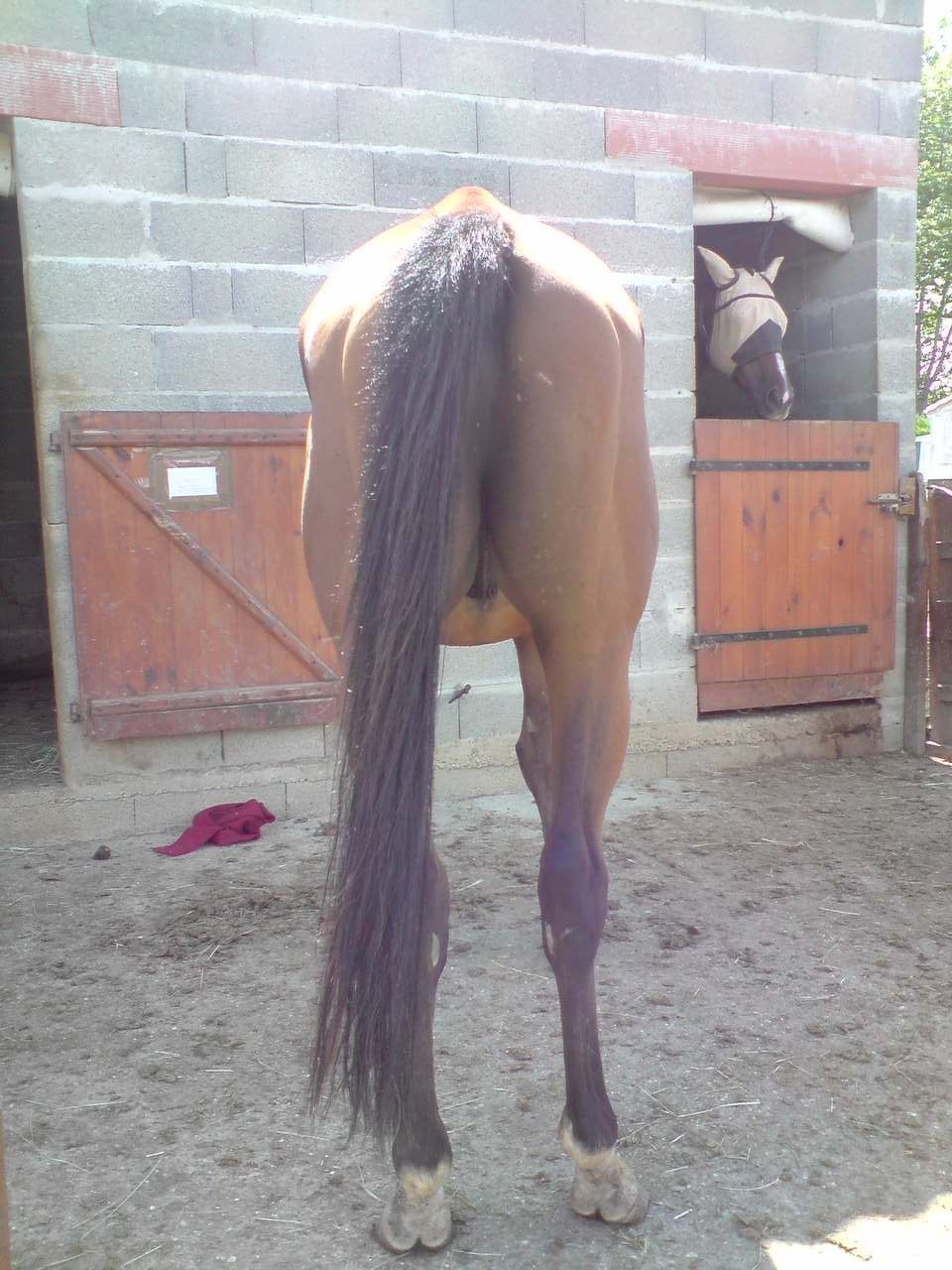 | Dire merci | je ne voulais pas que Roméo soit à nouveau tout seul, il fallait donc que je lui trouve un compagnon. J'ai donc commencé doucement a chercher, avant de recuperer Roméo. Un dimanche apres midi, nous avons décidé d'aller faire un petit chez un maquignon dont on m'avait parlé, histoire de voir un peu combien il fallait que je prevoit financierement pour acheter un loulou. Et la, coup de foudre pour celui que j'ai baptisé Miracle, un petit cheval borgne, terrorisé, attaché dans une stalle dans le noir, avec seule nourriture de la paille souillé et un abreuvoir sale et bloqué par diverses cochonneries... Il tremblait de tous ses membres voyant que je m'approchait de lui, tetanisé, il n'osait pas bouger un cil. Je lui ai parlé, l'ai caressé, puis lorsque j'ai reculé, il s'est retourné et m'a lancé un regard plein de detresse qui semblait me dire : "je t'en supplie reste avec moi" Ce petit cheval avait un abces de gourme enorme, il venait d'arriver, et etait promis à l'abbatoir... Ni une ni deux, je lache un : "combien ? Je le prends !" Nous sommes rentrés à la maison comme des fous, faisant un crochet par la coop agricole pour acheter de quoi faire la cloture (ben oui, c'etait pas prévu pour tout de suite ).On a cloturé le pré en une apres midi (1 ha), en plein cagnard, mais la motivation etait la, Miracle devait arriver le lendemain !! Voici donc mon joli Mimi [url=https://www.1cheval.com/membre/services/photos/images/27963.jpg] ![]() [/url] [url=https://www.1cheval.com/membre/services/photos/images/25517.jpg] ![]() [/url] Mimi est maintenant à la retraite, il est en train de perdre son autre oeil (cataracte congenitale), c'est le meilleur pote de Romeo, qui lui sert aussi de guide, et le rassure, car il est angoissé lorsque qu'il est en crise et se retrouve quasiment dans le noir. à suivre... |