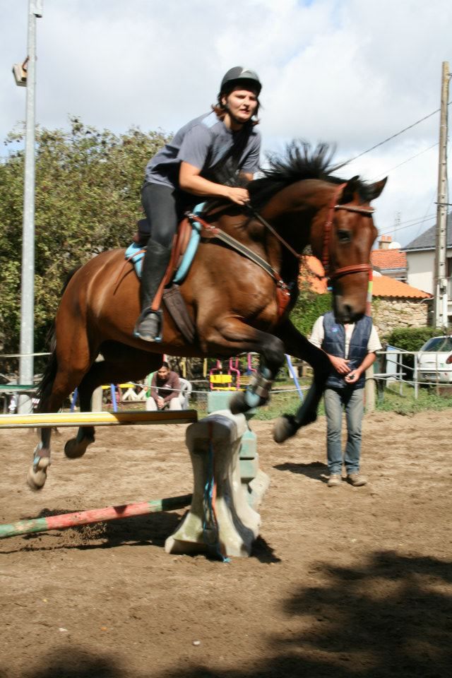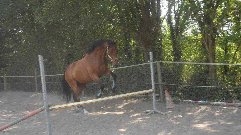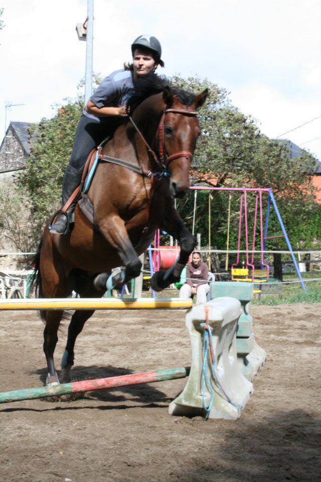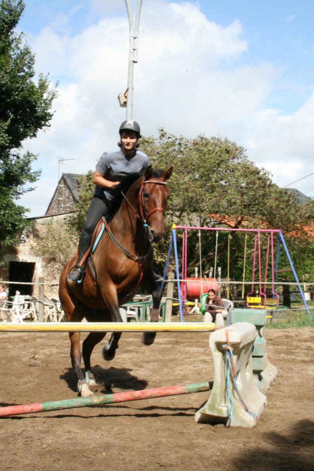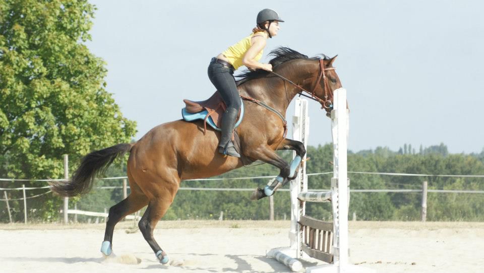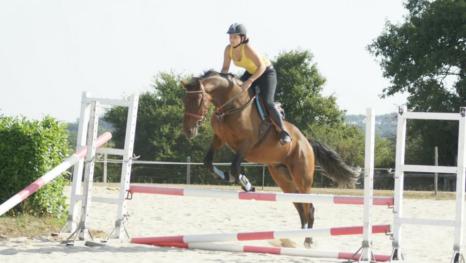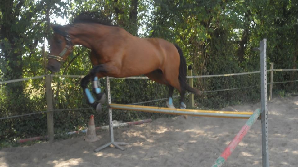 | Dire merci | Début Juin me revoila de nouvelle en selle avec un filet et un mors! Finalement le mors caoutchouc poulain était trop gros pour lui, je lui ai donc mis un "flexi color" plus fin et un peu moins souple et donc un peu plus sévère je crois. Mais étonnamment il lui va plutot bien. On recommence à prendre des cours, je réapprend à me détendre (j'en étais arrivé au point que tout me faisait peur: galoper, sauter, partir en extérieur... ![]() On se remet même à sauter! ![]() |