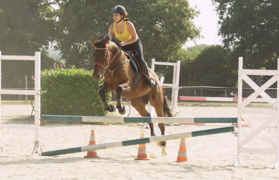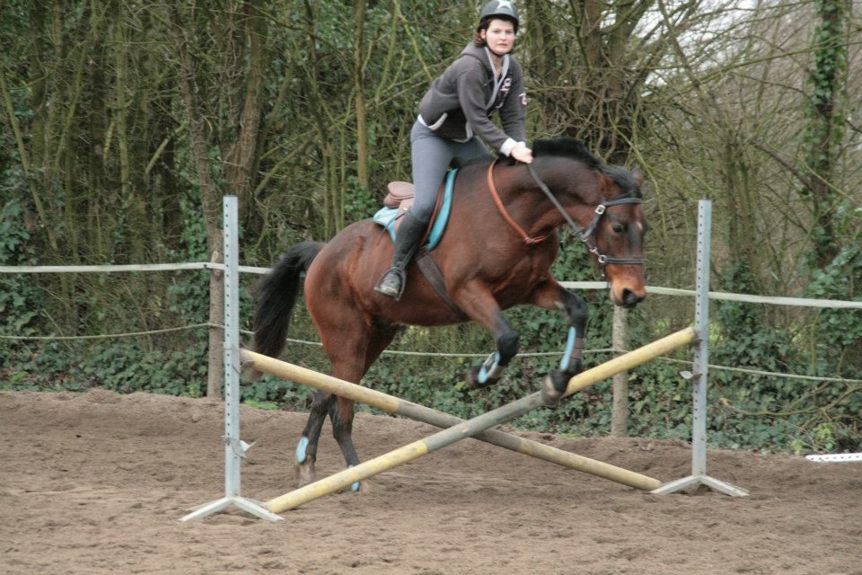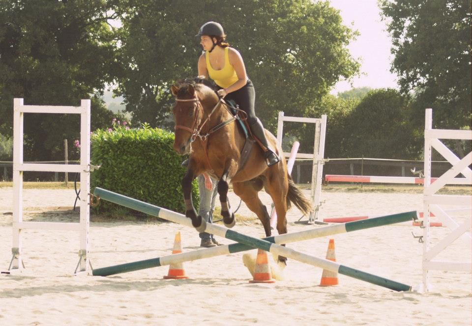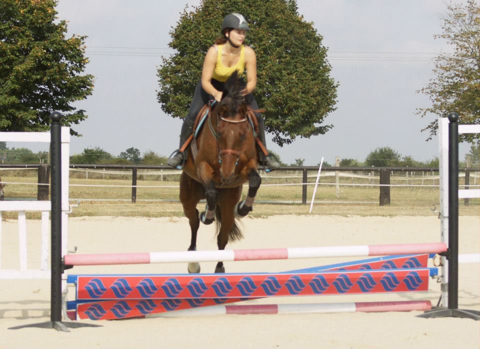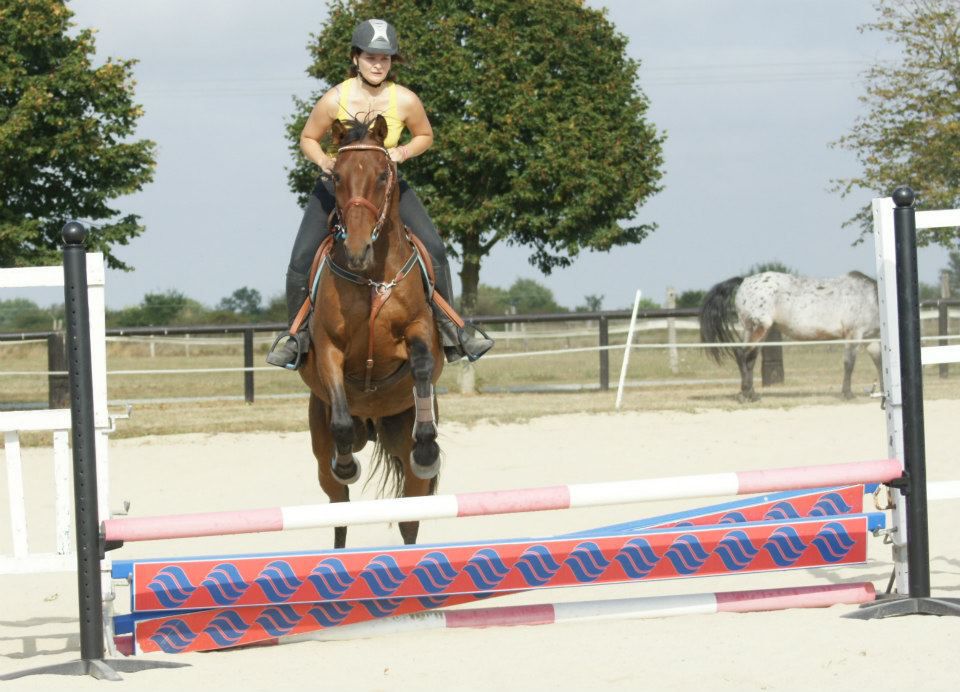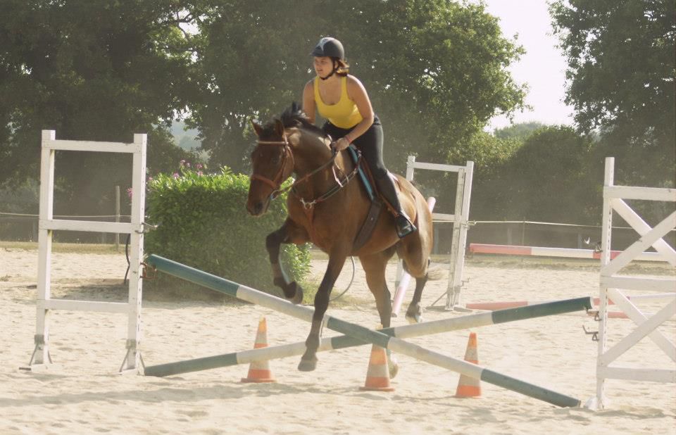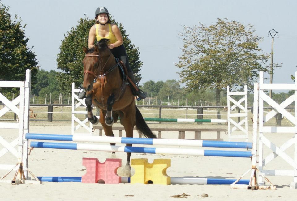 | Dire merci | Début Juin me revoila de nouvelle en selle avec un filet et un mors! Finalement le mors caoutchouc poulain était trop gros pour lui, je lui ai donc mis un "flexi color" plus fin et un peu moins souple et donc un peu plus sévère je crois. Mais étonnamment il lui va plutot bien. On recommence à prendre des cours, je réapprend à me détendre (j'en étais arrivé au point que tout me faisait peur: galoper, sauter, partir en extérieur... ![]() On se remet même à sauter! ![]() |