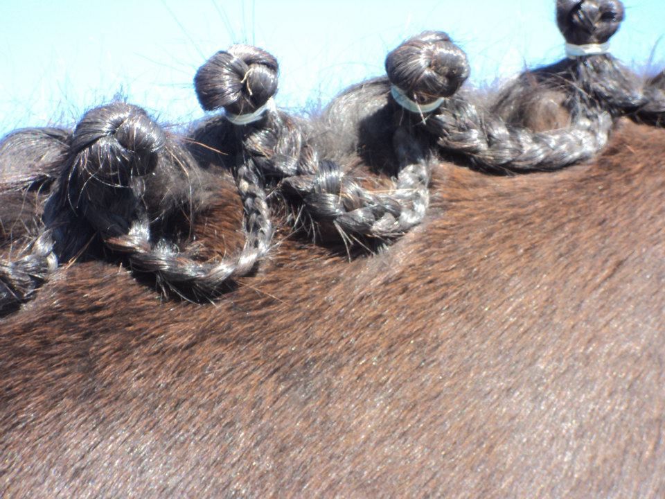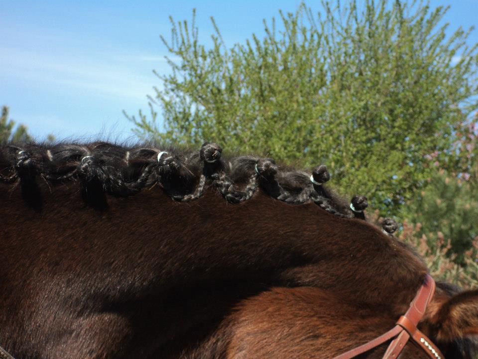 | Dire merci | Je savais que mes pions auraient un franc succès! Alors il faut que la crinière soit vraiment longue déja. Ensuite il faut natter chaque mèche jusqu'en bas, en les faisant assez large pour faire uen distance entre chaque mèche. Une fois toutes les nattes faites, il faut plier le haut en deux sur la moitié de la longueur pour former une sorte de pion et le reste faut l'attacher à la natte d'apres et refaire pareil! |