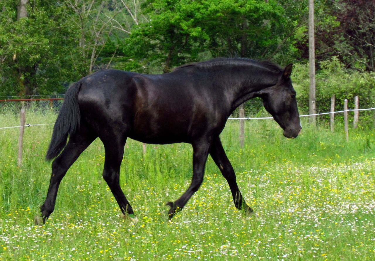 | Dire merci | Bonjour bonjour! Commençons ce topic-fleuve par une petite présentation des protagonistes ![]() Akanto, dit « poulichon », jeune étalon PRE noir né le 19 mars 2010 d’Ebanisto 6 et Nocturna XIII, à l’élevage Rozière. Un "pti jeune" aux multiples adjectifs, dont on retiendra particulièrement celui-ci : «calme ». Posé, réfléchi, c’est un élève modèle, quoique très gourmand. A côté de nos sorties "loisir" (il est labellisé Elite Loisir junior et monté, et on commence le TREC), Akanto commence le dressage de façon un peu plus sérieuse avec un cavalier, et commence à avoir des résultats très encourageants On fera d'ailleurs la finale européenne des MCI en novembre prochain en Belgique! Mais le gros de son emploi du temps, c'est de vivre au pré avec ses juments, une vraie vie de famille... ![]() Ma première jument, c'est Lebrera XXXVI, jument PRE PP née en 1999. Je la connaissais avant Akanto, j'ai failli réserver son poulain 2010, mais les aléas de la vie on fait que.... et puis la chance aidant, j'ai pu la racheter en 2012 car je rêvais d'un poulain d'elle, qui plus-est avec Akanto! Elle est la mère d'Eléio et de Falcon d'Auréa (né le 7 juillet 2015). ![]() Et le petit Falcon, surnommé Bambi ![]() ![]() Vient ensuite Eléa, jument de race Schwarzwalder née en 2007, une race de demi traits allemande (Forêt Noire). Eléa m'a été confiée par sa propriétaire pour une durée indéfinie, c'est une splendide jument, championne de M&A dans sa race et mère de champions également elle est très douce et caline Elle est la mère d'Elégie d'Auréa, née le 13 mai 2014, et de Faline d'Auréa, née le 3 juillet 2015. ![]() La petite Faline, à l'image de sa robe....elle a le feu! ![]() Enfin, Nikita (PRE baie, demi soeur de Lebrera par le père) et sa fille Féérie nous ont rejoint au cours de l'été, pour un poulain avec Akanto en juin 2016 ![]() Sans oublier Vicky, qui nous a quitté brutalement le 12 avril 2015.... Mon premier cheval, que j'ai rencontré 18 ans auparavant, dont j'ai rêvé d'être la propriétaire pendant 8 ans, et ce rêve s'est réalisé, durant les 8 dernières années, il m'a suivi à Lyon, en Alsace, et à Toulouse, où il a fini ses jours, entourés de sa "famille", toujours beau, toujours fier, un cheval exceptionnel, un sacré carafon mais incroyablement gentil et tolérant.... mon « vieux beau » qui me manque.... Lien ![]() Voici donc les chevaux qui composent mon jeune élevage, l'élevage d'Auréa.... à suivre au fil des pages... Lien Message édité le 23/12/15 à 11:57 Message édité le 01/01/16 à 22:03 |