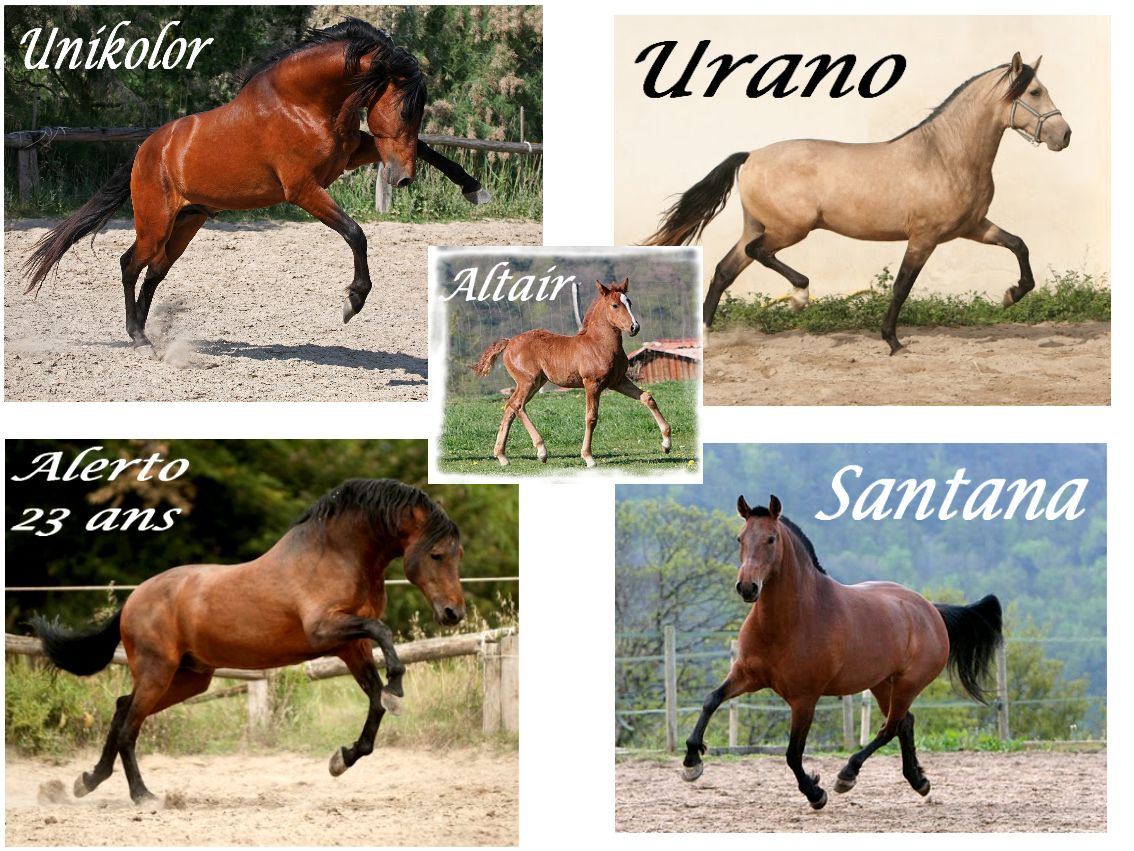 | Dire merci | Bonjour bonjour! Commençons ce topic-fleuve par une petite présentation des protagonistes ![]() Akanto, dit « poulichon », jeune étalon PRE noir né le 19 mars 2010 d’Ebanisto 6 et Nocturna XIII, à l’élevage Rozière. Un "pti jeune" aux multiples adjectifs, dont on retiendra particulièrement celui-ci : «calme ». Posé, réfléchi, c’est un élève modèle, quoique très gourmand. A côté de nos sorties "loisir" (il est labellisé Elite Loisir junior et monté, et on commence le TREC), Akanto commence le dressage de façon un peu plus sérieuse avec un cavalier, et commence à avoir des résultats très encourageants On fera d'ailleurs la finale européenne des MCI en novembre prochain en Belgique! Mais le gros de son emploi du temps, c'est de vivre au pré avec ses juments, une vraie vie de famille... ![]() Ma première jument, c'est Lebrera XXXVI, jument PRE PP née en 1999. Je la connaissais avant Akanto, j'ai failli réserver son poulain 2010, mais les aléas de la vie on fait que.... et puis la chance aidant, j'ai pu la racheter en 2012 car je rêvais d'un poulain d'elle, qui plus-est avec Akanto! Elle est la mère d'Eléio et de Falcon d'Auréa (né le 7 juillet 2015). ![]() Et le petit Falcon, surnommé Bambi ![]() ![]() Vient ensuite Eléa, jument de race Schwarzwalder née en 2007, une race de demi traits allemande (Forêt Noire). Eléa m'a été confiée par sa propriétaire pour une durée indéfinie, c'est une splendide jument, championne de M&A dans sa race et mère de champions également elle est très douce et caline Elle est la mère d'Elégie d'Auréa, née le 13 mai 2014, et de Faline d'Auréa, née le 3 juillet 2015. ![]() La petite Faline, à l'image de sa robe....elle a le feu! ![]() Enfin, Nikita (PRE baie, demi soeur de Lebrera par le père) et sa fille Féérie nous ont rejoint au cours de l'été, pour un poulain avec Akanto en juin 2016 ![]() Sans oublier Vicky, qui nous a quitté brutalement le 12 avril 2015.... Mon premier cheval, que j'ai rencontré 18 ans auparavant, dont j'ai rêvé d'être la propriétaire pendant 8 ans, et ce rêve s'est réalisé, durant les 8 dernières années, il m'a suivi à Lyon, en Alsace, et à Toulouse, où il a fini ses jours, entourés de sa "famille", toujours beau, toujours fier, un cheval exceptionnel, un sacré carafon mais incroyablement gentil et tolérant.... mon « vieux beau » qui me manque.... Lien ![]() Voici donc les chevaux qui composent mon jeune élevage, l'élevage d'Auréa.... à suivre au fil des pages... Lien Message édité le 23/12/15 à 11:57 Message édité le 01/01/16 à 22:03 |