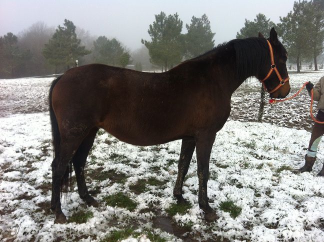 | Dire merci | Petite photo du matin de Lebrera, pleine de 7 mois. jcrois que je suis en train de virer gaga elle était un peu gênée au niveau des postérieurs ces derniers temps, probablement le poulain qui lui appuyait sur la vessie dure la vie de poulinière ![]() |
