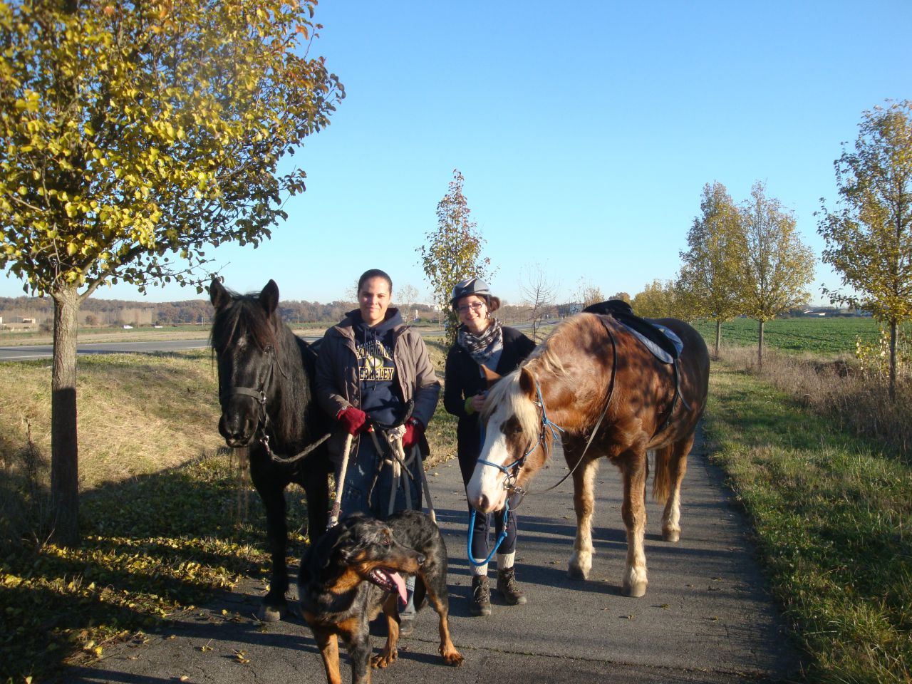 | Dire merci | On a fait la transhumance d'Eléa et Alays vers le pré de Vicky. La fine troupe était réunie: Sheytana, sucre33, et moi ![]() Sous un magnifique soleil, des températures clémentes, et un chemin étonnamment sympathique ![]() un joli pont en bois, un joli parc... Eléa était, comme a son habitude, un peu tendue et faisait son cinéma (mais sucre ne s'en laissait pas compter ), et Alays, en bonne mérens....à votre avis, qu'est ce qu'elle nous a fait? ![]() |