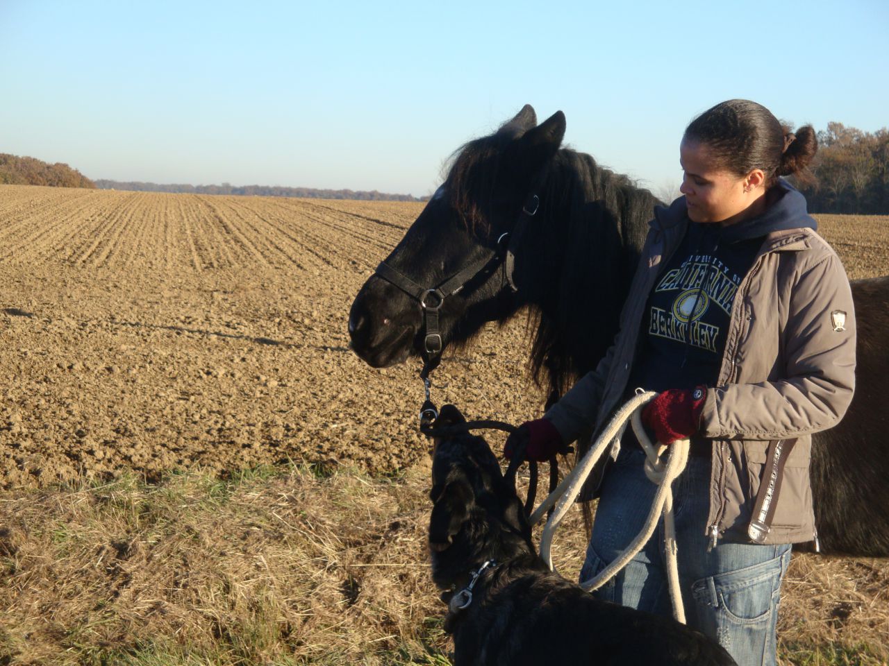 | Dire merci | Bonjour bonjour! Commençons ce topic-fleuve par une petite présentation des protagonistes ![]() Akanto, dit « poulichon », jeune étalon PRE noir né le 19 mars 2010 d’Ebanisto 6 et Nocturna XIII, à l’élevage Rozière. Un "pti jeune" aux multiples adjectifs, dont on retiendra particulièrement celui-ci : «calme ». Posé, réfléchi, c’est un élève modèle, quoique très gourmand. A côté de nos sorties "loisir" (il est labellisé Elite Loisir junior et monté, et on commence le TREC), Akanto commence le dressage de façon un peu plus sérieuse avec un cavalier, et commence à avoir des résultats très encourageants On fera d'ailleurs la finale européenne des MCI en novembre prochain en Belgique! Mais le gros de son emploi du temps, c'est de vivre au pré avec ses juments, une vraie vie de famille... ![]() Ma première jument, c'est Lebrera XXXVI, jument PRE PP née en 1999. Je la connaissais avant Akanto, j'ai failli réserver son poulain 2010, mais les aléas de la vie on fait que.... et puis la chance aidant, j'ai pu la racheter en 2012 car je rêvais d'un poulain d'elle, qui plus-est avec Akanto! Elle est la mère d'Eléio et de Falcon d'Auréa (né le 7 juillet 2015). ![]() Et le petit Falcon, surnommé Bambi ![]() ![]() Vient ensuite Eléa, jument de race Schwarzwalder née en 2007, une race de demi traits allemande (Forêt Noire). Eléa m'a été confiée par sa propriétaire pour une durée indéfinie, c'est une splendide jument, championne de M&A dans sa race et mère de champions également elle est très douce et caline Elle est la mère d'Elégie d'Auréa, née le 13 mai 2014, et de Faline d'Auréa, née le 3 juillet 2015. ![]() La petite Faline, à l'image de sa robe....elle a le feu! ![]() Enfin, Nikita (PRE baie, demi soeur de Lebrera par le père) et sa fille Féérie nous ont rejoint au cours de l'été, pour un poulain avec Akanto en juin 2016 ![]() Sans oublier Vicky, qui nous a quitté brutalement le 12 avril 2015.... Mon premier cheval, que j'ai rencontré 18 ans auparavant, dont j'ai rêvé d'être la propriétaire pendant 8 ans, et ce rêve s'est réalisé, durant les 8 dernières années, il m'a suivi à Lyon, en Alsace, et à Toulouse, où il a fini ses jours, entourés de sa "famille", toujours beau, toujours fier, un cheval exceptionnel, un sacré carafon mais incroyablement gentil et tolérant.... mon « vieux beau » qui me manque.... Lien ![]() Voici donc les chevaux qui composent mon jeune élevage, l'élevage d'Auréa.... à suivre au fil des pages... Lien Message édité le 23/12/15 à 11:57 Message édité le 01/01/16 à 22:03 |