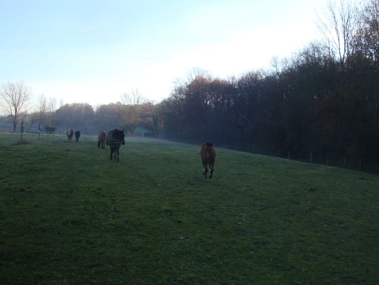 | Dire merci | J'espère que tout le monde a passé un joyeux noël par ici ![]() Cool le nouveau site sans "free" ![]() Voilà quelques photos de dimanche dernier : Diwali pot de colle, noooon pas du tout ![]() ![]() Eléa en mode "je veux des câlins" et petit bout qui tète ![]() La troupe qui me suit quand je pars vérifier le foin dans la forêt. Vicky en premier puis le poulain rattrape à fond les manettes |