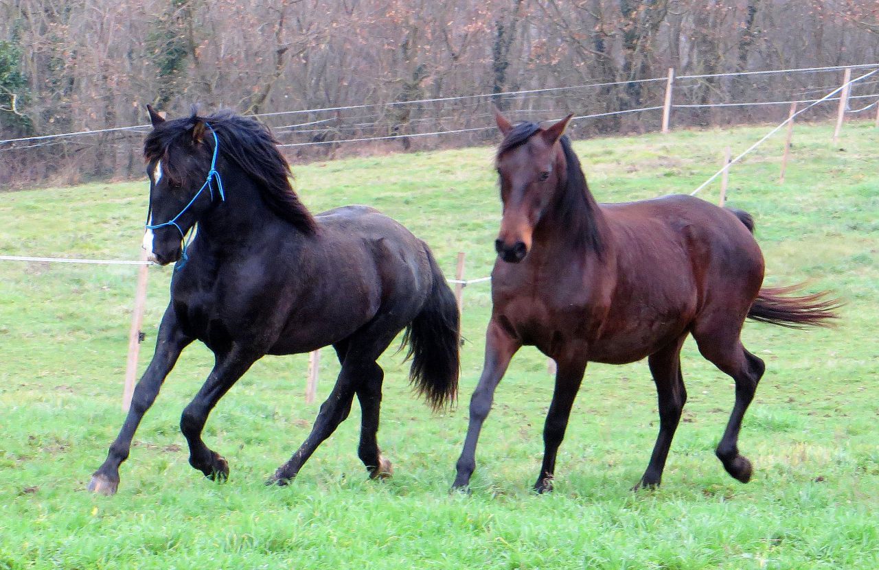 | Dire merci | Bonjour bonjour! Commençons ce topic-fleuve par une petite présentation des protagonistes ![]() Akanto, dit « poulichon », jeune étalon PRE noir né le 19 mars 2010 d’Ebanisto 6 et Nocturna XIII, à l’élevage Rozière. Un "pti jeune" aux multiples adjectifs, dont on retiendra particulièrement celui-ci : «calme ». Posé, réfléchi, c’est un élève modèle, quoique très gourmand. A côté de nos sorties "loisir" (il est labellisé Elite Loisir junior et monté, et on commence le TREC), Akanto commence le dressage de façon un peu plus sérieuse avec un cavalier, et commence à avoir des résultats très encourageants On fera d'ailleurs la finale européenne des MCI en novembre prochain en Belgique! Mais le gros de son emploi du temps, c'est de vivre au pré avec ses juments, une vraie vie de famille... ![]() Ma première jument, c'est Lebrera XXXVI, jument PRE PP née en 1999. Je la connaissais avant Akanto, j'ai failli réserver son poulain 2010, mais les aléas de la vie on fait que.... et puis la chance aidant, j'ai pu la racheter en 2012 car je rêvais d'un poulain d'elle, qui plus-est avec Akanto! Elle est la mère d'Eléio et de Falcon d'Auréa (né le 7 juillet 2015). ![]() Et le petit Falcon, surnommé Bambi ![]() ![]() Vient ensuite Eléa, jument de race Schwarzwalder née en 2007, une race de demi traits allemande (Forêt Noire). Eléa m'a été confiée par sa propriétaire pour une durée indéfinie, c'est une splendide jument, championne de M&A dans sa race et mère de champions également elle est très douce et caline Elle est la mère d'Elégie d'Auréa, née le 13 mai 2014, et de Faline d'Auréa, née le 3 juillet 2015. ![]() La petite Faline, à l'image de sa robe....elle a le feu! ![]() Enfin, Nikita (PRE baie, demi soeur de Lebrera par le père) et sa fille Féérie nous ont rejoint au cours de l'été, pour un poulain avec Akanto en juin 2016 ![]() Sans oublier Vicky, qui nous a quitté brutalement le 12 avril 2015.... Mon premier cheval, que j'ai rencontré 18 ans auparavant, dont j'ai rêvé d'être la propriétaire pendant 8 ans, et ce rêve s'est réalisé, durant les 8 dernières années, il m'a suivi à Lyon, en Alsace, et à Toulouse, où il a fini ses jours, entourés de sa "famille", toujours beau, toujours fier, un cheval exceptionnel, un sacré carafon mais incroyablement gentil et tolérant.... mon « vieux beau » qui me manque.... Lien ![]() Voici donc les chevaux qui composent mon jeune élevage, l'élevage d'Auréa.... à suivre au fil des pages... Lien Message édité le 23/12/15 à 11:57 Message édité le 01/01/16 à 22:03 |