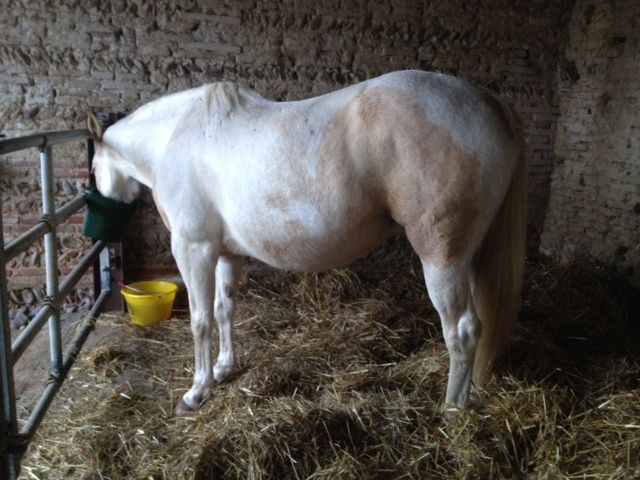 | Dire merci | C'est rigolo, en moins de 24h j'ai eu des photos des 2 autres juments pleines d'Akanto pour 2014 ![]() Voici donc celle qui ouvrira le bal, Reina (mi/fin février) ![]() et Animosa, qui fermera la marche (mi/fin août) ![]() Sinon, aujourd'hui, journée chaaaargéeee ![]() même pas eu le temps de monter Akanto ![]() Vaccin pour Vicky (qui va super bien, pour changer j'aime le voir comme ça, même si mes venues sont trop rares ), fermeture définitive du pré d'ici à ce printemps (avec toutes ces pluies, ça commençait à défoncer le terrain..du coup ils n'ont qu'un paddock, un couloir, et la forêt), nouveau roundballer (purée je comprends pourquoi j'ai perdu du poids depuis novembre.... c'est tellement lourd ces c****ries )et soin de paturons à toute la troupe, pour prévenir la gale de boue..on va voir combien de temps arrive à tenir ma pommade miracle |