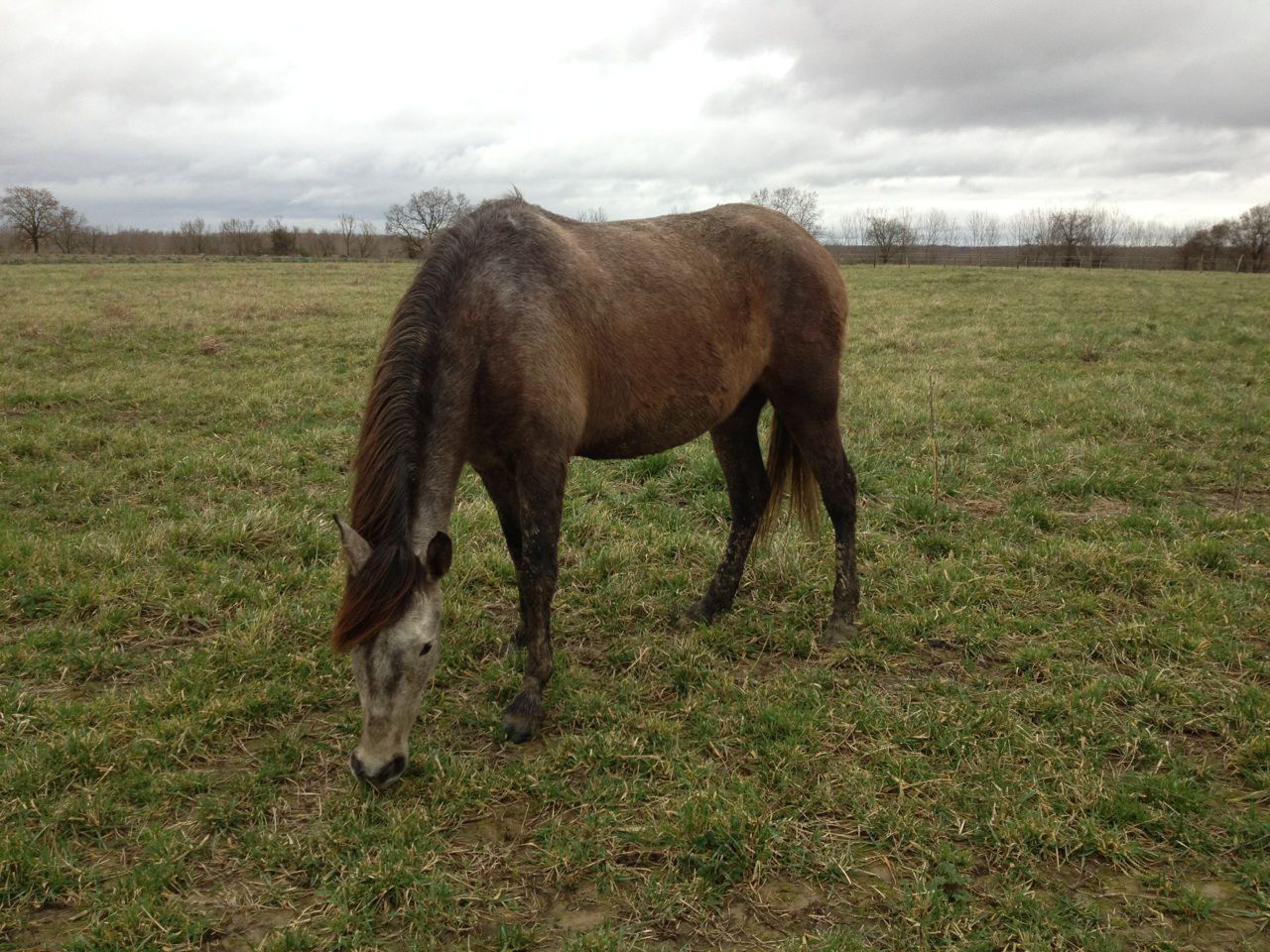 | Dire merci | il ne glisse pas du tout, il est pieds nus pour l'instant (et il ne sera ferré que quand ça sera vraiment nécessaire, comme de toute façon il vit au pré, c'est dangereux de ferrer les postérieurs, et comme c'est un étalon c'est aussi dangereux de ferrer les antérieurs...) |