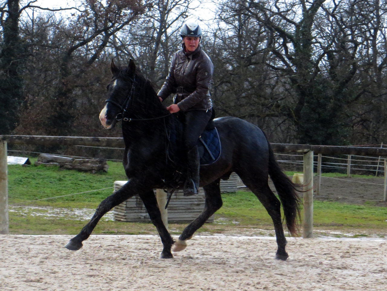 | Dire merci | Oui, j'ai aussi l'impression qu'il était plus droit avec JP, moins à ouvrir la bouche et croquer son mors comme ça. Al : il avait quoi comme mors là-bas ?? Au début de la séance il a énormément croqué le mors jusqu'à essayer de s'y soustraire en levant, secouant la tête. Après le travail au trot avec engagement : fallait qu'il avance vraiment, ça allait bien mieux. |