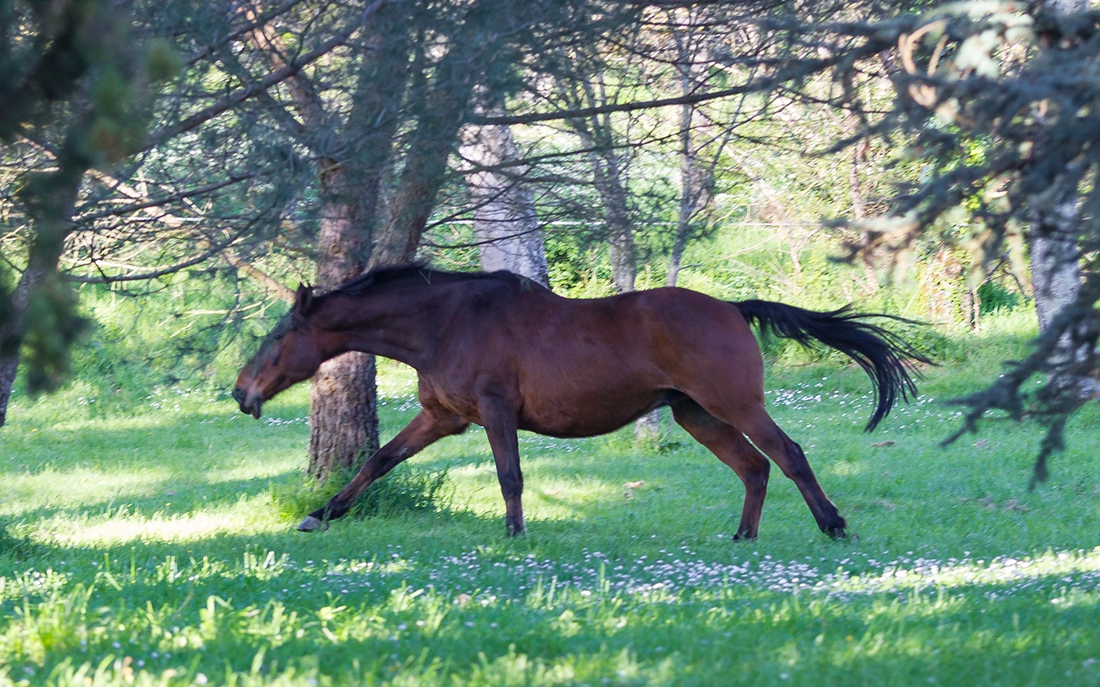 | Dire merci | Bonjour bonjour! Commençons ce topic-fleuve par une petite présentation des protagonistes ![]() Akanto, dit « poulichon », jeune étalon PRE noir né le 19 mars 2010 d’Ebanisto 6 et Nocturna XIII, à l’élevage Rozière. Un "pti jeune" aux multiples adjectifs, dont on retiendra particulièrement celui-ci : «calme ». Posé, réfléchi, c’est un élève modèle, quoique très gourmand. A côté de nos sorties "loisir" (il est labellisé Elite Loisir junior et monté, et on commence le TREC), Akanto commence le dressage de façon un peu plus sérieuse avec un cavalier, et commence à avoir des résultats très encourageants On fera d'ailleurs la finale européenne des MCI en novembre prochain en Belgique! Mais le gros de son emploi du temps, c'est de vivre au pré avec ses juments, une vraie vie de famille... ![]() Ma première jument, c'est Lebrera XXXVI, jument PRE PP née en 1999. Je la connaissais avant Akanto, j'ai failli réserver son poulain 2010, mais les aléas de la vie on fait que.... et puis la chance aidant, j'ai pu la racheter en 2012 car je rêvais d'un poulain d'elle, qui plus-est avec Akanto! Elle est la mère d'Eléio et de Falcon d'Auréa (né le 7 juillet 2015). ![]() Et le petit Falcon, surnommé Bambi ![]() ![]() Vient ensuite Eléa, jument de race Schwarzwalder née en 2007, une race de demi traits allemande (Forêt Noire). Eléa m'a été confiée par sa propriétaire pour une durée indéfinie, c'est une splendide jument, championne de M&A dans sa race et mère de champions également elle est très douce et caline Elle est la mère d'Elégie d'Auréa, née le 13 mai 2014, et de Faline d'Auréa, née le 3 juillet 2015. ![]() La petite Faline, à l'image de sa robe....elle a le feu! ![]() Enfin, Nikita (PRE baie, demi soeur de Lebrera par le père) et sa fille Féérie nous ont rejoint au cours de l'été, pour un poulain avec Akanto en juin 2016 ![]() Sans oublier Vicky, qui nous a quitté brutalement le 12 avril 2015.... Mon premier cheval, que j'ai rencontré 18 ans auparavant, dont j'ai rêvé d'être la propriétaire pendant 8 ans, et ce rêve s'est réalisé, durant les 8 dernières années, il m'a suivi à Lyon, en Alsace, et à Toulouse, où il a fini ses jours, entourés de sa "famille", toujours beau, toujours fier, un cheval exceptionnel, un sacré carafon mais incroyablement gentil et tolérant.... mon « vieux beau » qui me manque.... Lien ![]() Voici donc les chevaux qui composent mon jeune élevage, l'élevage d'Auréa.... à suivre au fil des pages... Lien Message édité le 23/12/15 à 11:57 Message édité le 01/01/16 à 22:03 |