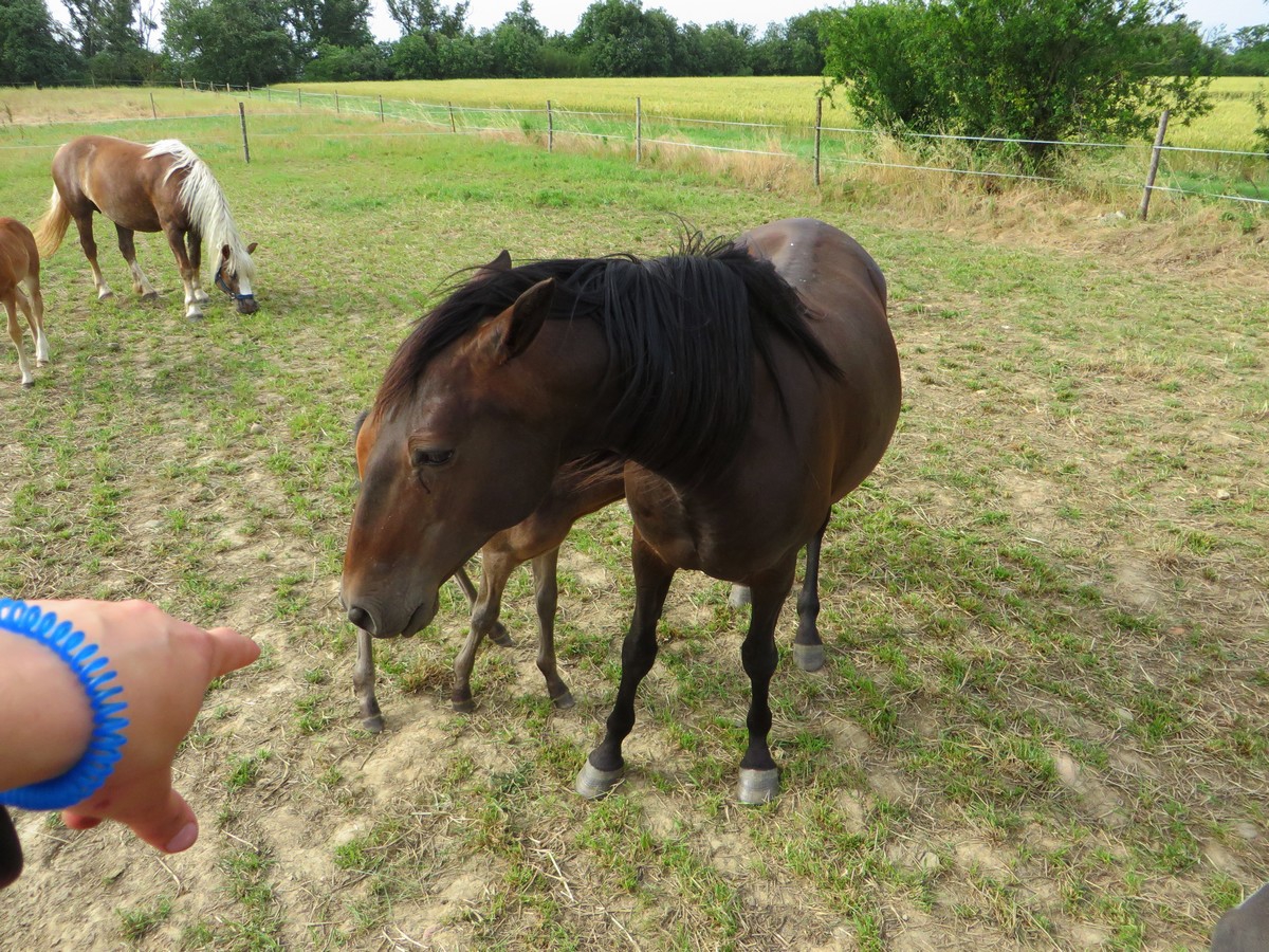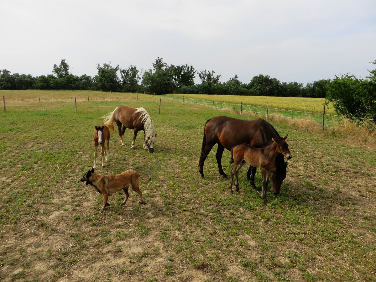 | Dire merci | Les photos du jour... Ou comment recycler les restes d'un vernissage Si Eléa et Lebrera ont apprécié, visiblement Akanto a trié, il aime pô la blague ![]() Eléio qui teste tout...mais vraiment TOUT! ![]() ![]() cet aprèm, par curiosité, il a quitté sa mère, qui était dans le pré du fond, pour rejoindre sa nouvelle grande copine (élégie)...y'a une bonne centaine de mètres quand même! Lebrera n'a rien remarqué sur le coup, la tête dans l'herbe...mais quand, de longues minutes plus tard, elle l'a relevé, elle était en panique, OMG, où est mon bébé? Elle l'appelle, il ne répond pas (moi j'étais à 2m de lui, pliée de rire ), elle aperçoit les autres, elle déboule au grand galop, pfiou! quel stress! la pauvre, elle a pas fini avec un chenapan comme lui |