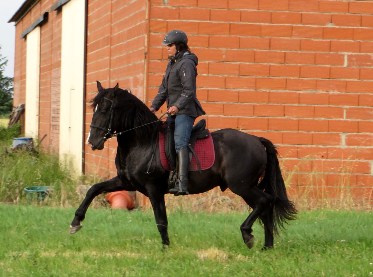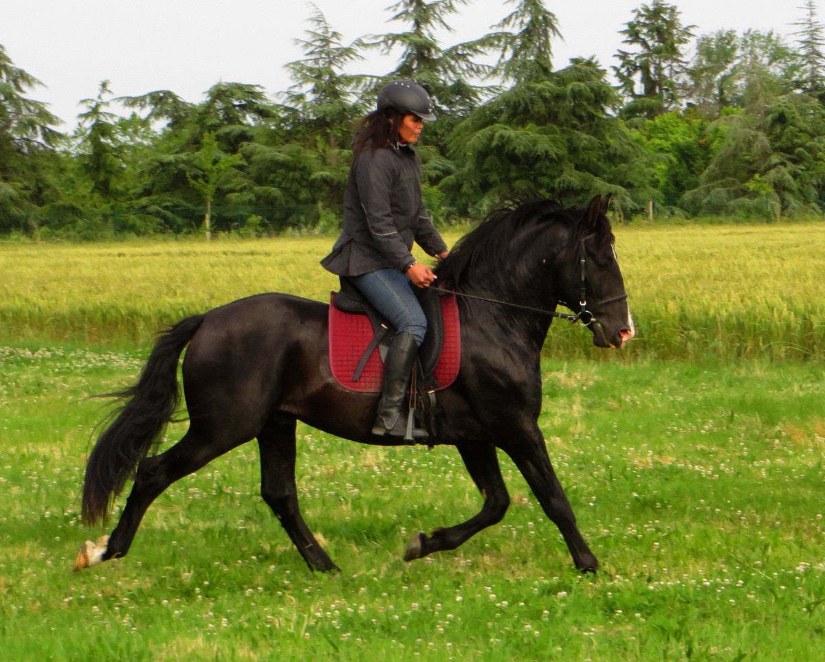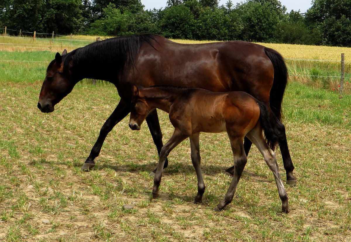 | Dire merci | Bonjour bonjour! Commençons ce topic-fleuve par une petite présentation des protagonistes ![]() Akanto, dit « poulichon », jeune étalon PRE noir né le 19 mars 2010 d’Ebanisto 6 et Nocturna XIII, à l’élevage Rozière. Un "pti jeune" aux multiples adjectifs, dont on retiendra particulièrement celui-ci : «calme ». Posé, réfléchi, c’est un élève modèle, quoique très gourmand. A côté de nos sorties "loisir" (il est labellisé Elite Loisir junior et monté, et on commence le TREC), Akanto commence le dressage de façon un peu plus sérieuse avec un cavalier, et commence à avoir des résultats très encourageants On fera d'ailleurs la finale européenne des MCI en novembre prochain en Belgique! Mais le gros de son emploi du temps, c'est de vivre au pré avec ses juments, une vraie vie de famille... ![]() Ma première jument, c'est Lebrera XXXVI, jument PRE PP née en 1999. Je la connaissais avant Akanto, j'ai failli réserver son poulain 2010, mais les aléas de la vie on fait que.... et puis la chance aidant, j'ai pu la racheter en 2012 car je rêvais d'un poulain d'elle, qui plus-est avec Akanto! Elle est la mère d'Eléio et de Falcon d'Auréa (né le 7 juillet 2015). ![]() Et le petit Falcon, surnommé Bambi ![]() ![]() Vient ensuite Eléa, jument de race Schwarzwalder née en 2007, une race de demi traits allemande (Forêt Noire). Eléa m'a été confiée par sa propriétaire pour une durée indéfinie, c'est une splendide jument, championne de M&A dans sa race et mère de champions également elle est très douce et caline Elle est la mère d'Elégie d'Auréa, née le 13 mai 2014, et de Faline d'Auréa, née le 3 juillet 2015. ![]() La petite Faline, à l'image de sa robe....elle a le feu! ![]() Enfin, Nikita (PRE baie, demi soeur de Lebrera par le père) et sa fille Féérie nous ont rejoint au cours de l'été, pour un poulain avec Akanto en juin 2016 ![]() Sans oublier Vicky, qui nous a quitté brutalement le 12 avril 2015.... Mon premier cheval, que j'ai rencontré 18 ans auparavant, dont j'ai rêvé d'être la propriétaire pendant 8 ans, et ce rêve s'est réalisé, durant les 8 dernières années, il m'a suivi à Lyon, en Alsace, et à Toulouse, où il a fini ses jours, entourés de sa "famille", toujours beau, toujours fier, un cheval exceptionnel, un sacré carafon mais incroyablement gentil et tolérant.... mon « vieux beau » qui me manque.... Lien ![]() Voici donc les chevaux qui composent mon jeune élevage, l'élevage d'Auréa.... à suivre au fil des pages... Lien Message édité le 23/12/15 à 11:57 Message édité le 01/01/16 à 22:03 |