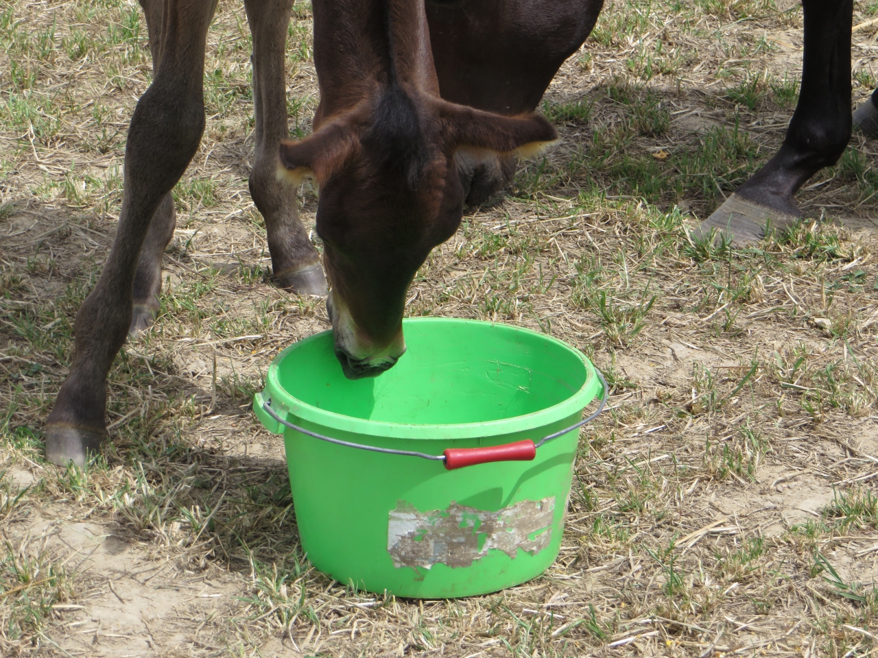 | Dire merci | oui c'est une petite gravure ce mec! et il le sait! j'adore quand il se tient comme ça!![]() Bon, sinon, les news du jour....pleiinnns de nouvelles choses en même pas une heure! Après la vermifugation des parents en bonne et due forme (jvais adorer le ramassage des crottins pendant les prochaines 48h vu que jpeux pas les enfermer au box ) et la mise de l'anti mouche sur les parents (les moucherons sont déjà de retour), j'ai décidé de m'attaquer aux mioches ![]() La première à faire les frais de mes lubies, c'est Elégie, qui évidemment, se prête de bonne grâce à toutes mes extravagances, elle est tellement contente qu'on s'occupe d'elle! (la crinière ça date d'il y a 3 jours )Du coup hop! mise du licol, sans trop de cérémonie, parce qu'elle s'en fichait, mais d'une force ![]() ça lui va trop bien je trouve Puis je lui ai mis à elle aussi du spray, car j'ai déjà trouvé une tique sur elle, et puis jlui ai écrasé un moustique sur la fesse, alors hop, un peu d'anti mouches pour elle aussi, ça fera pas de mal... notons que l'anti mouches est en spray, du coup elle y a eu droit sur tout le corps...zéro réaction, elle s'en fiche royalement ![]() Eléio, j'ai pas osé l'embêter avec le licol, déjà que je l'attrape 2 fois par jour pour le piquer, j'attends avant de le manipuler, lui, vu qu'en prime il est pas méga calin, il est curieux et se met (enfin) à venir vers moi et à me toucher sans repartir 2m plus loin....va falloir être patient avec lui, il a du carafon! Autant Elégie c'est la petite puce, hyper facile et hyper gentille, qui ne fait jamais une bêtise, rien. Autant Eléio c'est le poulain monté sur ressorts, qui va tout voir, tout toucher, tout tester.... une fois qu'on sera potes, on va pas s'ennuyer, c'est garanti ![]() Donc une fois le licol retiré à Elégie, je le laisse par terre, et Eléio vient le voir, c'est visiblement beaucoup plus drôle que le seau ![]() il l'a balancé plusieurs fois comme ça ![]() Mais la dernière fois il s'est tapé le poitrail avec un peu fort, du coup il a eu peur, l'a lâché, et est allé voir sa soeur (c'est lui qui va vers elle, elle n'ose pas trop s'approcher de lui car Lebrera la chasse tout le temps) ![]() |