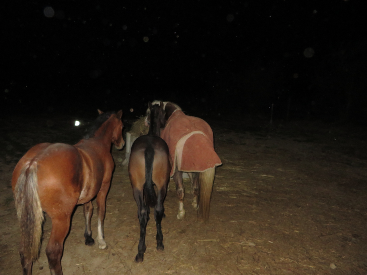 | Dire merci | pouh: non, pas pour l'instant. Principalement pour raison budgétaire. Purée il commence à faire frisquet à toulouse, j'ai du couvrir vicky ce soir! ben oui, avec le peu de gras qu'il a, faut pas qu'il ait à se réchauffer la nuit, donc on prévient ![]() j'ai couvert aussi Eléa, parce qu'avec sucre33 on a fait une assez grande balade (1h45 environ, principalement du pas), pour aller jusqu'au gros centre équestre, on a bossé un peu en cordéo avec poulichon, il était pas mal du tout! faut voir si les DL passeront bien à équitalyon, là j'étais pas convaincue...pourtant dans le paddock c'était pas mal...alors était-ce parce que c'était un rond de longe? (ZE gros rond de longe couvert, pas mal pour se mettre dans une ambiance "indoor". et donc forcément, éléa avec son poil et son manque d'entrainement, elle a pas mal transpiré...du coup j'ai couvert avec une landa lite (la vieille de vicky, non imperméable mais pas de pluie prévue)...mais GROS GROS doute quant au potentiel de connerie d'Eléio, qui bien évidemment a tout de suite voulu mordre la couverture bon j'y suis retournée 2h plus tard (gratouilles de nuit à Elégie, qui apprécie toujours autant poser sa tête sur nos cuisses quand elle dort ), la couverture était intact et Eléio était occupé à embêter son père croisons les doigts pour demain matin |