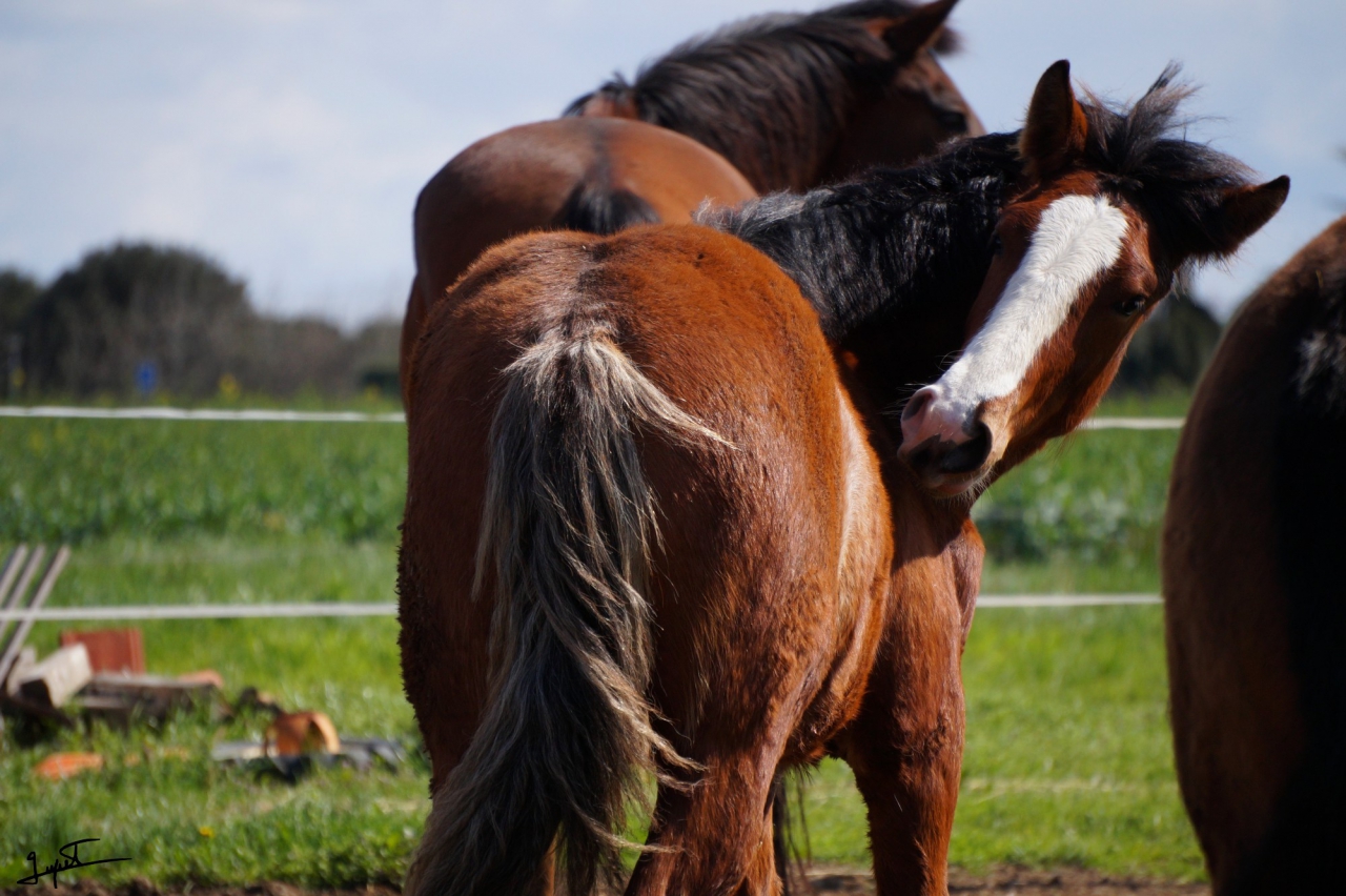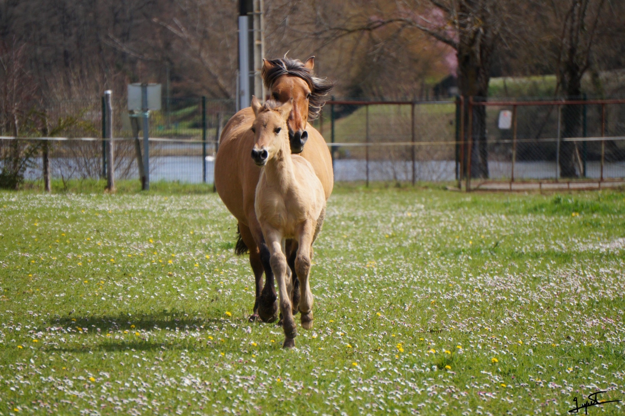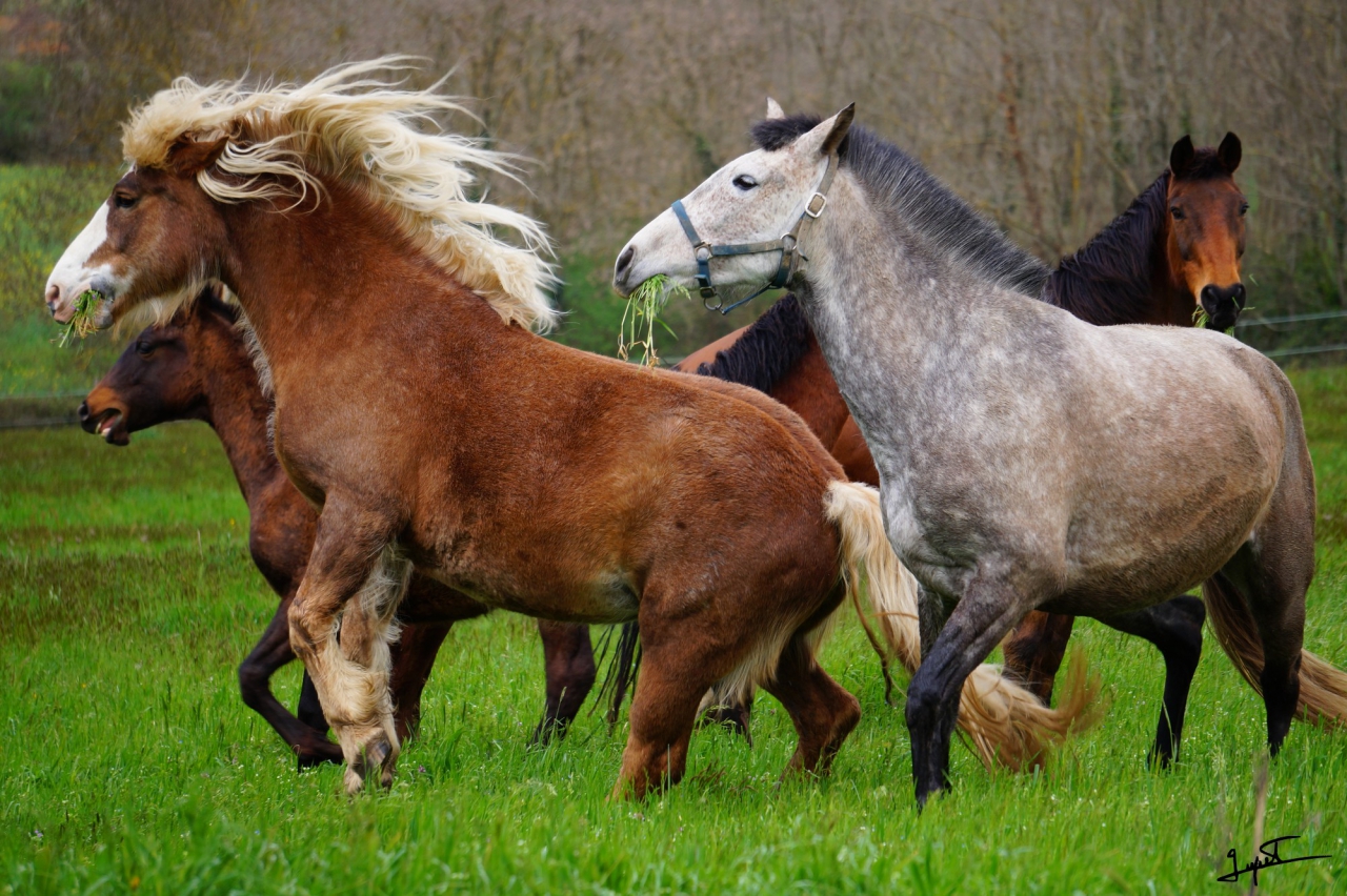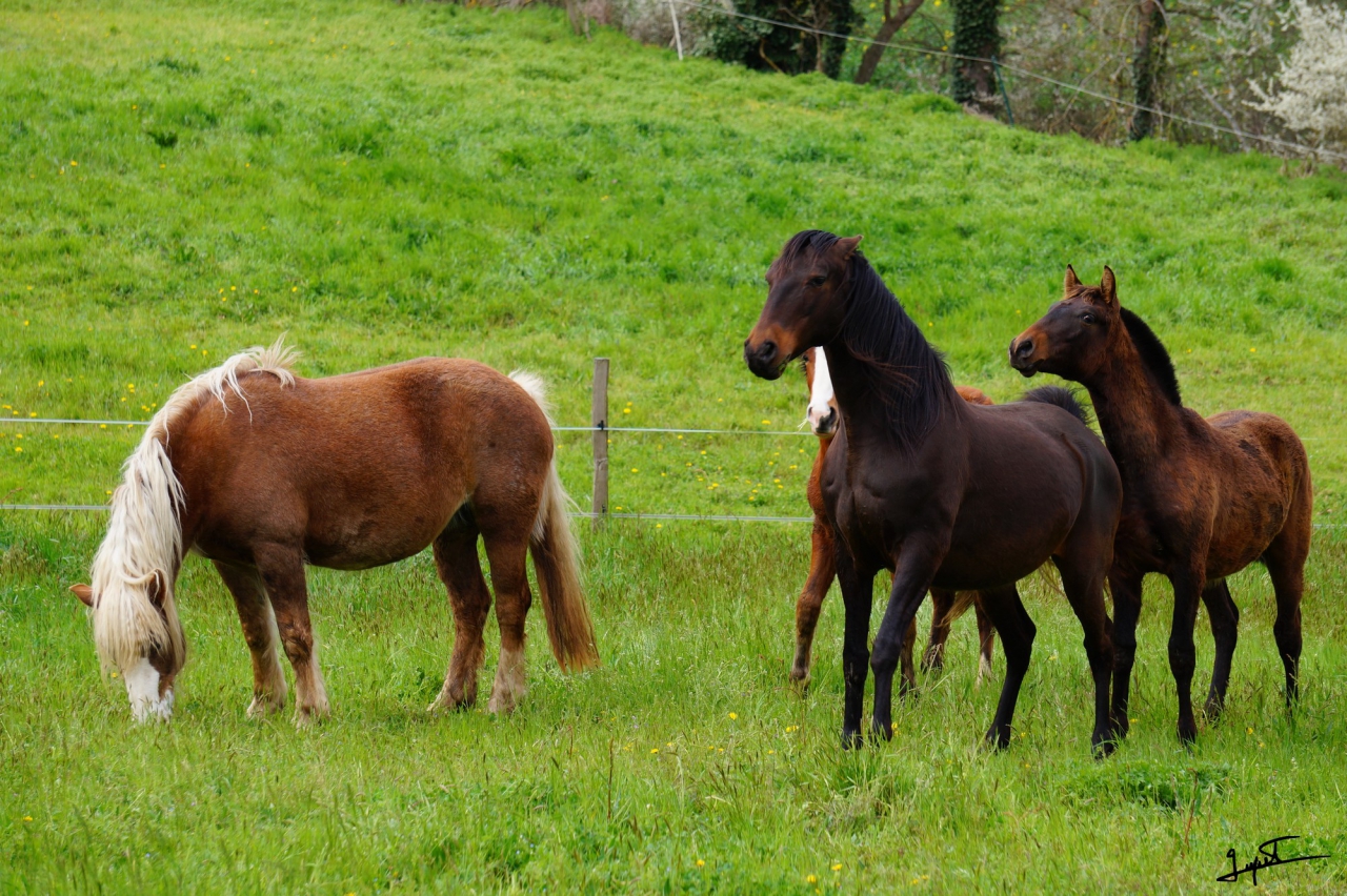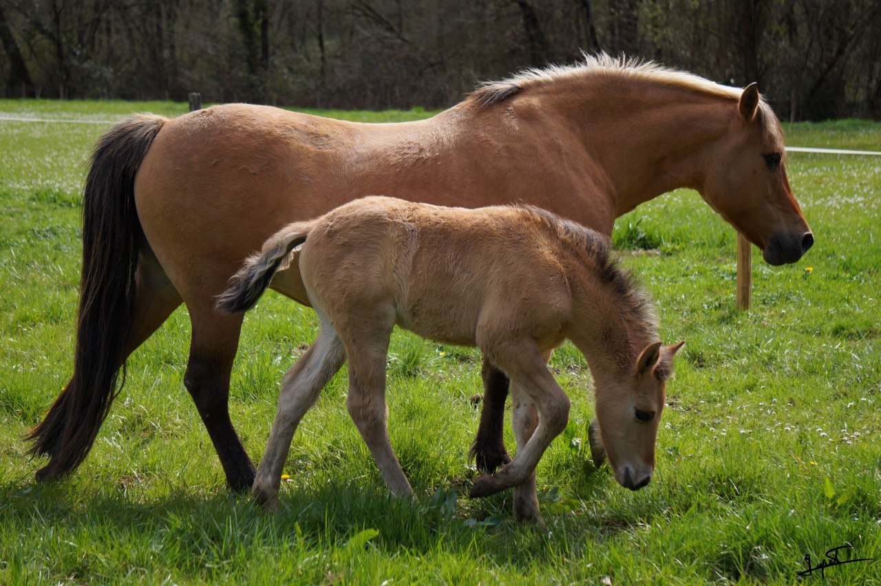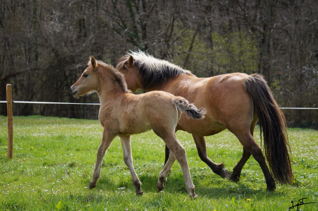 | Dire merci | oui ça progresse de semaine en semaine, c'est cool ![]() aujourd'hui les juments ont rejoint leurs bébés (pour profiter d'un parc de 9000m² où l'herbe poussait trop vite), en compagnie d'Animosa (la grise saillie en aout dernier), on a donc mis les 2 mini troupeaux de 3 ensemble (Akanto est à Gratens pour la semaine), et devinez qui a fait le plus chier??? ....Vicky, pour changer |