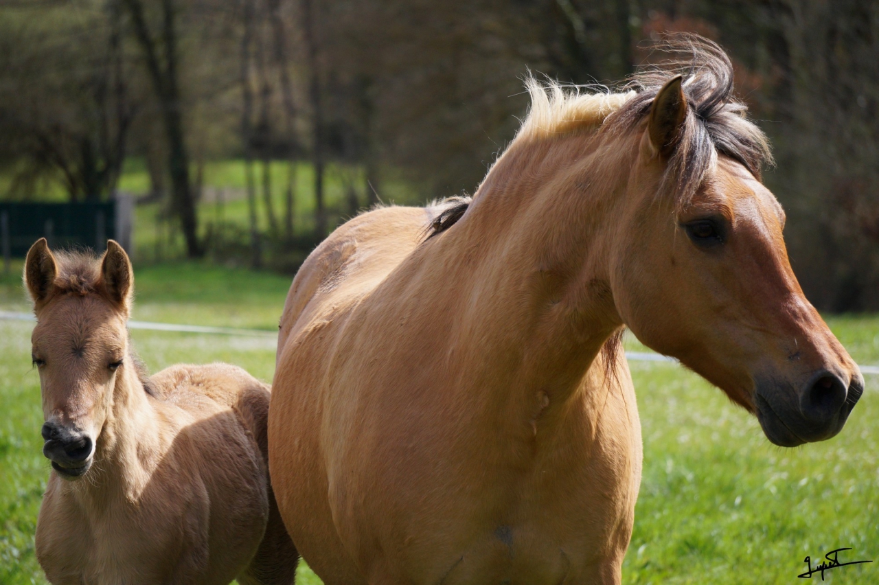 | Dire merci | Bonjour bonjour! Commençons ce topic-fleuve par une petite présentation des protagonistes ![]() Akanto, dit « poulichon », jeune étalon PRE noir né le 19 mars 2010 d’Ebanisto 6 et Nocturna XIII, à l’élevage Rozière. Un "pti jeune" aux multiples adjectifs, dont on retiendra particulièrement celui-ci : «calme ». Posé, réfléchi, c’est un élève modèle, quoique très gourmand. A côté de nos sorties "loisir" (il est labellisé Elite Loisir junior et monté, et on commence le TREC), Akanto commence le dressage de façon un peu plus sérieuse avec un cavalier, et commence à avoir des résultats très encourageants On fera d'ailleurs la finale européenne des MCI en novembre prochain en Belgique! Mais le gros de son emploi du temps, c'est de vivre au pré avec ses juments, une vraie vie de famille... ![]() Ma première jument, c'est Lebrera XXXVI, jument PRE PP née en 1999. Je la connaissais avant Akanto, j'ai failli réserver son poulain 2010, mais les aléas de la vie on fait que.... et puis la chance aidant, j'ai pu la racheter en 2012 car je rêvais d'un poulain d'elle, qui plus-est avec Akanto! Elle est la mère d'Eléio et de Falcon d'Auréa (né le 7 juillet 2015). ![]() Et le petit Falcon, surnommé Bambi ![]() ![]() Vient ensuite Eléa, jument de race Schwarzwalder née en 2007, une race de demi traits allemande (Forêt Noire). Eléa m'a été confiée par sa propriétaire pour une durée indéfinie, c'est une splendide jument, championne de M&A dans sa race et mère de champions également elle est très douce et caline Elle est la mère d'Elégie d'Auréa, née le 13 mai 2014, et de Faline d'Auréa, née le 3 juillet 2015. ![]() La petite Faline, à l'image de sa robe....elle a le feu! ![]() Enfin, Nikita (PRE baie, demi soeur de Lebrera par le père) et sa fille Féérie nous ont rejoint au cours de l'été, pour un poulain avec Akanto en juin 2016 ![]() Sans oublier Vicky, qui nous a quitté brutalement le 12 avril 2015.... Mon premier cheval, que j'ai rencontré 18 ans auparavant, dont j'ai rêvé d'être la propriétaire pendant 8 ans, et ce rêve s'est réalisé, durant les 8 dernières années, il m'a suivi à Lyon, en Alsace, et à Toulouse, où il a fini ses jours, entourés de sa "famille", toujours beau, toujours fier, un cheval exceptionnel, un sacré carafon mais incroyablement gentil et tolérant.... mon « vieux beau » qui me manque.... Lien ![]() Voici donc les chevaux qui composent mon jeune élevage, l'élevage d'Auréa.... à suivre au fil des pages... Lien Message édité le 23/12/15 à 11:57 Message édité le 01/01/16 à 22:03 |