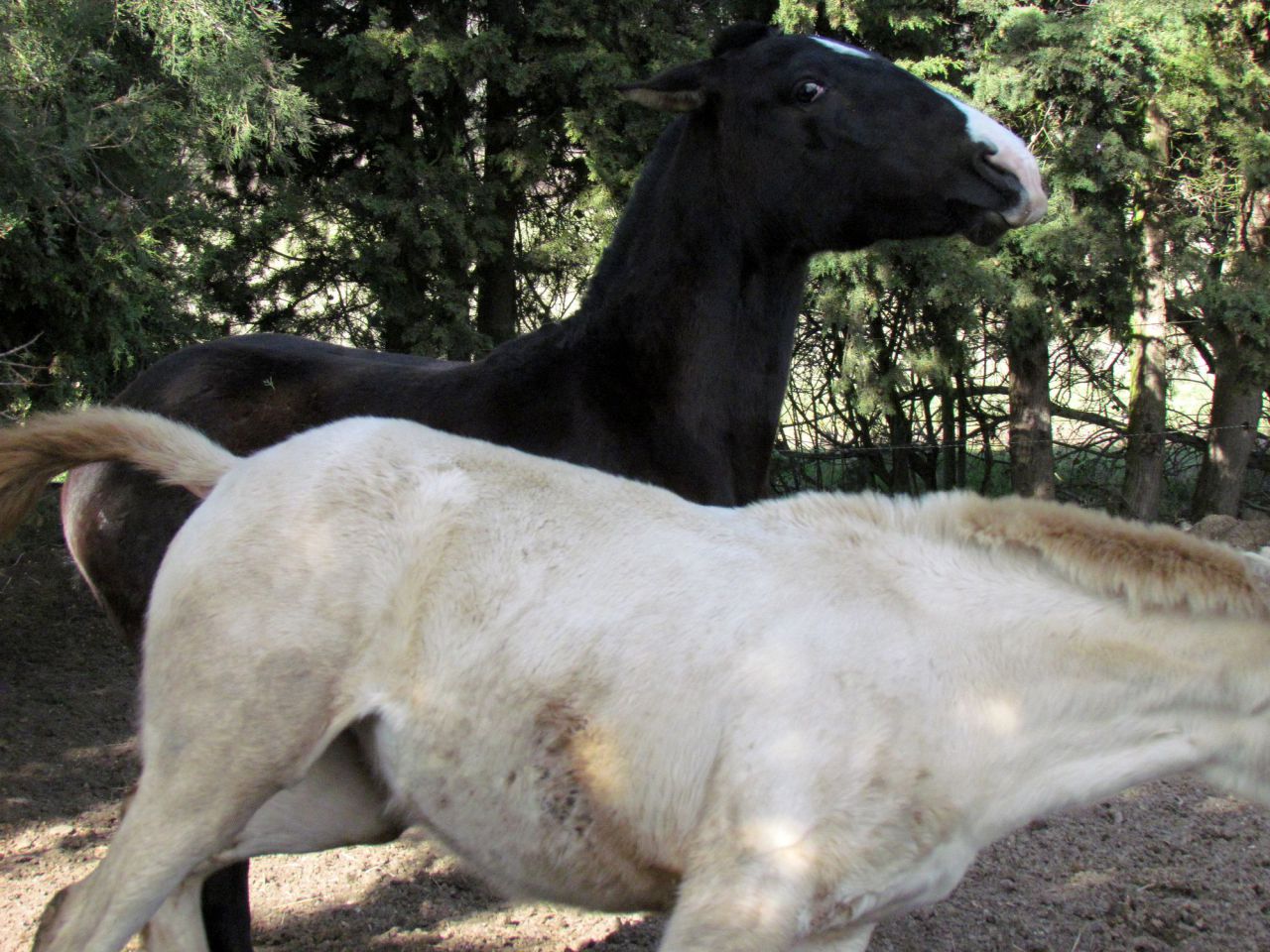 | Dire merci | Bon, pas grand chose pour aujourd'hui, j'avais la flemme de "bosser". Enfin, on a fait le minimum syndical quoi prise des pieds, marcher en main à distance, premiers essais de reculer en secouant la longe (jsuis en train de lire "communiquer avec son cheval" de vsv, c'est pour ça ) et.... vermifuge à l'arrivée au pré, tout le monde rapplique, et les poulinous se précipitent...sur le seau de CMV, genre il est jamais là, voyons ![]() pendant la séance calins (tiens j'ai découvert un nouveau point G, les n'oreilles ), il regarde Choupette s'en aller![]() Poulinous rentrent du pré...direction le placard pour 48h! ![]() Après la vermifugation (et un poulinou aaaaaadorable ), on fait courir un peu les pouillous dans le paddock ![]() ![]() ![]() Akanto léééégèrement vexé de se faire griller la priorité par la ptiote ![]() et voila, à jeudi pouillou! ![]() |