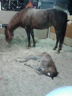 | Dire merci | petit mot pour vous annoncer la naissance de F...., premier poulain de Nadja (la jument de ma soeur, et qui a été un temps la chérie de Vicky), par Double d'Elle Après 12 mois et 12 jours de gestation! Maman et fiston se portent bien! ![]() Spoiler