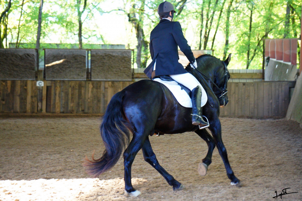 | Dire merci | Bonjour bonjour! Commençons ce topic-fleuve par une petite présentation des protagonistes ![]() Akanto, dit « poulichon », jeune étalon PRE noir né le 19 mars 2010 d’Ebanisto 6 et Nocturna XIII, à l’élevage Rozière. Un "pti jeune" aux multiples adjectifs, dont on retiendra particulièrement celui-ci : «calme ». Posé, réfléchi, c’est un élève modèle, quoique très gourmand. A côté de nos sorties "loisir" (il est labellisé Elite Loisir junior et monté, et on commence le TREC), Akanto commence le dressage de façon un peu plus sérieuse avec un cavalier, et commence à avoir des résultats très encourageants On fera d'ailleurs la finale européenne des MCI en novembre prochain en Belgique! Mais le gros de son emploi du temps, c'est de vivre au pré avec ses juments, une vraie vie de famille... ![]() Ma première jument, c'est Lebrera XXXVI, jument PRE PP née en 1999. Je la connaissais avant Akanto, j'ai failli réserver son poulain 2010, mais les aléas de la vie on fait que.... et puis la chance aidant, j'ai pu la racheter en 2012 car je rêvais d'un poulain d'elle, qui plus-est avec Akanto! Elle est la mère d'Eléio et de Falcon d'Auréa (né le 7 juillet 2015). ![]() Et le petit Falcon, surnommé Bambi ![]() ![]() Vient ensuite Eléa, jument de race Schwarzwalder née en 2007, une race de demi traits allemande (Forêt Noire). Eléa m'a été confiée par sa propriétaire pour une durée indéfinie, c'est une splendide jument, championne de M&A dans sa race et mère de champions également elle est très douce et caline Elle est la mère d'Elégie d'Auréa, née le 13 mai 2014, et de Faline d'Auréa, née le 3 juillet 2015. ![]() La petite Faline, à l'image de sa robe....elle a le feu! ![]() Enfin, Nikita (PRE baie, demi soeur de Lebrera par le père) et sa fille Féérie nous ont rejoint au cours de l'été, pour un poulain avec Akanto en juin 2016 ![]() Sans oublier Vicky, qui nous a quitté brutalement le 12 avril 2015.... Mon premier cheval, que j'ai rencontré 18 ans auparavant, dont j'ai rêvé d'être la propriétaire pendant 8 ans, et ce rêve s'est réalisé, durant les 8 dernières années, il m'a suivi à Lyon, en Alsace, et à Toulouse, où il a fini ses jours, entourés de sa "famille", toujours beau, toujours fier, un cheval exceptionnel, un sacré carafon mais incroyablement gentil et tolérant.... mon « vieux beau » qui me manque.... Lien ![]() Voici donc les chevaux qui composent mon jeune élevage, l'élevage d'Auréa.... à suivre au fil des pages... Lien Message édité le 23/12/15 à 11:57 Message édité le 01/01/16 à 22:03 |