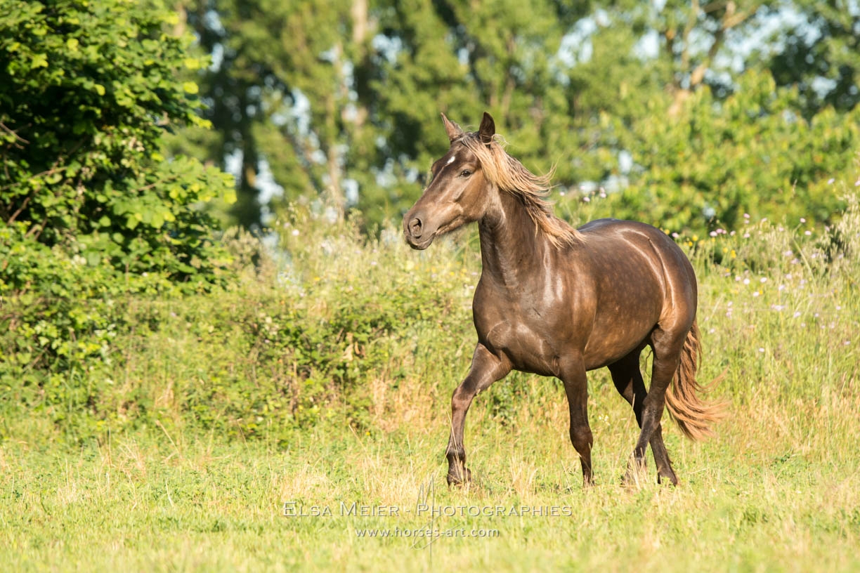 | Dire merci | Bonjour bonjour! Commençons ce topic-fleuve par une petite présentation des protagonistes ![]() Akanto, dit « poulichon », jeune étalon PRE noir né le 19 mars 2010 d’Ebanisto 6 et Nocturna XIII, à l’élevage Rozière. Un "pti jeune" aux multiples adjectifs, dont on retiendra particulièrement celui-ci : «calme ». Posé, réfléchi, c’est un élève modèle, quoique très gourmand. A côté de nos sorties "loisir" (il est labellisé Elite Loisir junior et monté, et on commence le TREC), Akanto commence le dressage de façon un peu plus sérieuse avec un cavalier, et commence à avoir des résultats très encourageants On fera d'ailleurs la finale européenne des MCI en novembre prochain en Belgique! Mais le gros de son emploi du temps, c'est de vivre au pré avec ses juments, une vraie vie de famille... ![]() Ma première jument, c'est Lebrera XXXVI, jument PRE PP née en 1999. Je la connaissais avant Akanto, j'ai failli réserver son poulain 2010, mais les aléas de la vie on fait que.... et puis la chance aidant, j'ai pu la racheter en 2012 car je rêvais d'un poulain d'elle, qui plus-est avec Akanto! Elle est la mère d'Eléio et de Falcon d'Auréa (né le 7 juillet 2015). ![]() Et le petit Falcon, surnommé Bambi ![]() ![]() Vient ensuite Eléa, jument de race Schwarzwalder née en 2007, une race de demi traits allemande (Forêt Noire). Eléa m'a été confiée par sa propriétaire pour une durée indéfinie, c'est une splendide jument, championne de M&A dans sa race et mère de champions également elle est très douce et caline Elle est la mère d'Elégie d'Auréa, née le 13 mai 2014, et de Faline d'Auréa, née le 3 juillet 2015. ![]() La petite Faline, à l'image de sa robe....elle a le feu! ![]() Enfin, Nikita (PRE baie, demi soeur de Lebrera par le père) et sa fille Féérie nous ont rejoint au cours de l'été, pour un poulain avec Akanto en juin 2016 ![]() Sans oublier Vicky, qui nous a quitté brutalement le 12 avril 2015.... Mon premier cheval, que j'ai rencontré 18 ans auparavant, dont j'ai rêvé d'être la propriétaire pendant 8 ans, et ce rêve s'est réalisé, durant les 8 dernières années, il m'a suivi à Lyon, en Alsace, et à Toulouse, où il a fini ses jours, entourés de sa "famille", toujours beau, toujours fier, un cheval exceptionnel, un sacré carafon mais incroyablement gentil et tolérant.... mon « vieux beau » qui me manque.... Lien ![]() Voici donc les chevaux qui composent mon jeune élevage, l'élevage d'Auréa.... à suivre au fil des pages... Lien Message édité le 23/12/15 à 11:57 Message édité le 01/01/16 à 22:03 |