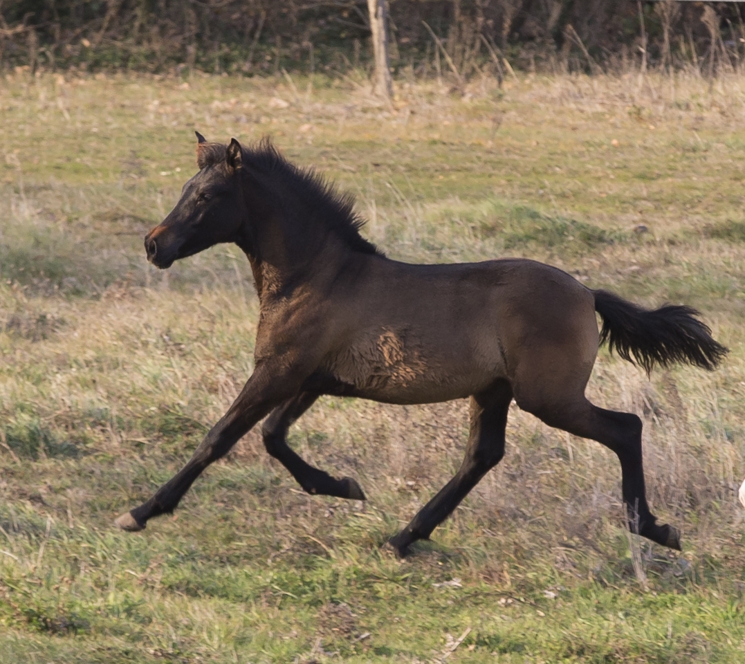 | Dire merci | Bonjour bonjour! Commençons ce topic-fleuve par une petite présentation des protagonistes ![]() Akanto, dit « poulichon », jeune étalon PRE noir né le 19 mars 2010 d’Ebanisto 6 et Nocturna XIII, à l’élevage Rozière. Un "pti jeune" aux multiples adjectifs, dont on retiendra particulièrement celui-ci : «calme ». Posé, réfléchi, c’est un élève modèle, quoique très gourmand. A côté de nos sorties "loisir" (il est labellisé Elite Loisir junior et monté, et on commence le TREC), Akanto commence le dressage de façon un peu plus sérieuse avec un cavalier, et commence à avoir des résultats très encourageants On fera d'ailleurs la finale européenne des MCI en novembre prochain en Belgique! Mais le gros de son emploi du temps, c'est de vivre au pré avec ses juments, une vraie vie de famille... ![]() Ma première jument, c'est Lebrera XXXVI, jument PRE PP née en 1999. Je la connaissais avant Akanto, j'ai failli réserver son poulain 2010, mais les aléas de la vie on fait que.... et puis la chance aidant, j'ai pu la racheter en 2012 car je rêvais d'un poulain d'elle, qui plus-est avec Akanto! Elle est la mère d'Eléio et de Falcon d'Auréa (né le 7 juillet 2015). ![]() Et le petit Falcon, surnommé Bambi ![]() ![]() Vient ensuite Eléa, jument de race Schwarzwalder née en 2007, une race de demi traits allemande (Forêt Noire). Eléa m'a été confiée par sa propriétaire pour une durée indéfinie, c'est une splendide jument, championne de M&A dans sa race et mère de champions également elle est très douce et caline Elle est la mère d'Elégie d'Auréa, née le 13 mai 2014, et de Faline d'Auréa, née le 3 juillet 2015. ![]() La petite Faline, à l'image de sa robe....elle a le feu! ![]() Enfin, Nikita (PRE baie, demi soeur de Lebrera par le père) et sa fille Féérie nous ont rejoint au cours de l'été, pour un poulain avec Akanto en juin 2016 ![]() Sans oublier Vicky, qui nous a quitté brutalement le 12 avril 2015.... Mon premier cheval, que j'ai rencontré 18 ans auparavant, dont j'ai rêvé d'être la propriétaire pendant 8 ans, et ce rêve s'est réalisé, durant les 8 dernières années, il m'a suivi à Lyon, en Alsace, et à Toulouse, où il a fini ses jours, entourés de sa "famille", toujours beau, toujours fier, un cheval exceptionnel, un sacré carafon mais incroyablement gentil et tolérant.... mon « vieux beau » qui me manque.... Lien ![]() Voici donc les chevaux qui composent mon jeune élevage, l'élevage d'Auréa.... à suivre au fil des pages... Lien Message édité le 23/12/15 à 11:57 Message édité le 01/01/16 à 22:03 |