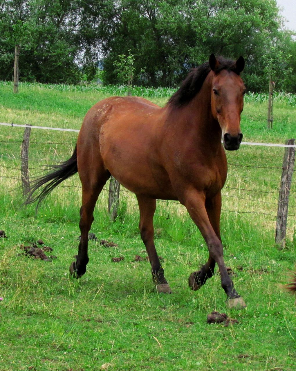 | Dire merci | Bonjour bonjour! Commençons ce topic-fleuve par une petite présentation des protagonistes ![]() Akanto, dit « poulichon », jeune étalon PRE noir né le 19 mars 2010 d’Ebanisto 6 et Nocturna XIII, à l’élevage Rozière. Un "pti jeune" aux multiples adjectifs, dont on retiendra particulièrement celui-ci : «calme ». Posé, réfléchi, c’est un élève modèle, quoique très gourmand. A côté de nos sorties "loisir" (il est labellisé Elite Loisir junior et monté, et on commence le TREC), Akanto commence le dressage de façon un peu plus sérieuse avec un cavalier, et commence à avoir des résultats très encourageants On fera d'ailleurs la finale européenne des MCI en novembre prochain en Belgique! Mais le gros de son emploi du temps, c'est de vivre au pré avec ses juments, une vraie vie de famille... ![]() Ma première jument, c'est Lebrera XXXVI, jument PRE PP née en 1999. Je la connaissais avant Akanto, j'ai failli réserver son poulain 2010, mais les aléas de la vie on fait que.... et puis la chance aidant, j'ai pu la racheter en 2012 car je rêvais d'un poulain d'elle, qui plus-est avec Akanto! Elle est la mère d'Eléio et de Falcon d'Auréa (né le 7 juillet 2015). ![]() Et le petit Falcon, surnommé Bambi ![]() ![]() Vient ensuite Eléa, jument de race Schwarzwalder née en 2007, une race de demi traits allemande (Forêt Noire). Eléa m'a été confiée par sa propriétaire pour une durée indéfinie, c'est une splendide jument, championne de M&A dans sa race et mère de champions également elle est très douce et caline Elle est la mère d'Elégie d'Auréa, née le 13 mai 2014, et de Faline d'Auréa, née le 3 juillet 2015. ![]() La petite Faline, à l'image de sa robe....elle a le feu! ![]() Enfin, Nikita (PRE baie, demi soeur de Lebrera par le père) et sa fille Féérie nous ont rejoint au cours de l'été, pour un poulain avec Akanto en juin 2016 ![]() Sans oublier Vicky, qui nous a quitté brutalement le 12 avril 2015.... Mon premier cheval, que j'ai rencontré 18 ans auparavant, dont j'ai rêvé d'être la propriétaire pendant 8 ans, et ce rêve s'est réalisé, durant les 8 dernières années, il m'a suivi à Lyon, en Alsace, et à Toulouse, où il a fini ses jours, entourés de sa "famille", toujours beau, toujours fier, un cheval exceptionnel, un sacré carafon mais incroyablement gentil et tolérant.... mon « vieux beau » qui me manque.... Lien ![]() Voici donc les chevaux qui composent mon jeune élevage, l'élevage d'Auréa.... à suivre au fil des pages... Lien Message édité le 23/12/15 à 11:57 Message édité le 01/01/16 à 22:03 |
