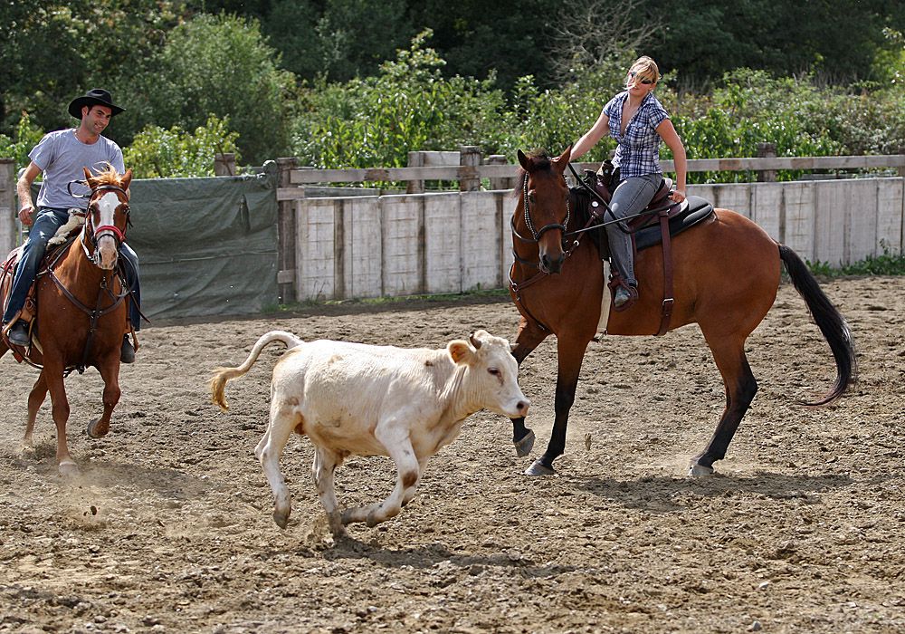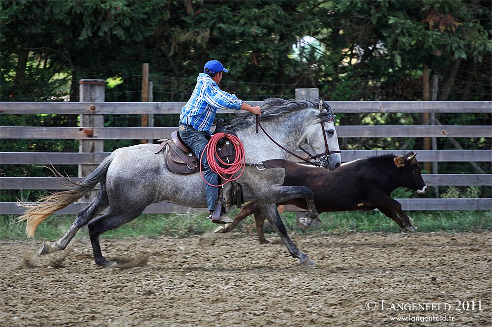 | Dire merci | et voila les photos de PE ![]() Vicky perplexe face aux vaches... ![]() On écoute les conseils du maître ![]() ![]() Tenez, petit test: quelle race pour ce 4 ans? ![]() ![]() Premier essai de team roping, on se met en ligne ![]() Une vache s'échappe! ![]() ...et Gros Vicky tente de la rattraper ![]() Un autre 4 ans, très doué ![]() ![]() et un beau PRE de 5 ans ![]() ![]() |