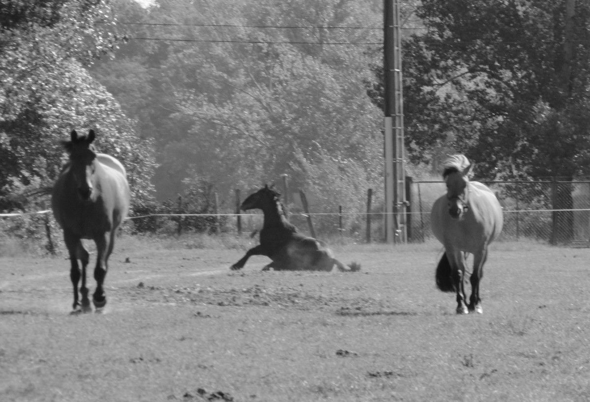 | Dire merci | Bonjour bonjour! Commençons ce topic-fleuve par une petite présentation des protagonistes ![]() Akanto, dit « poulichon », jeune étalon PRE noir né le 19 mars 2010 d’Ebanisto 6 et Nocturna XIII, à l’élevage Rozière. Un "pti jeune" aux multiples adjectifs, dont on retiendra particulièrement celui-ci : «calme ». Posé, réfléchi, c’est un élève modèle, quoique très gourmand. A côté de nos sorties "loisir" (il est labellisé Elite Loisir junior et monté, et on commence le TREC), Akanto commence le dressage de façon un peu plus sérieuse avec un cavalier, et commence à avoir des résultats très encourageants On fera d'ailleurs la finale européenne des MCI en novembre prochain en Belgique! Mais le gros de son emploi du temps, c'est de vivre au pré avec ses juments, une vraie vie de famille... ![]() Ma première jument, c'est Lebrera XXXVI, jument PRE PP née en 1999. Je la connaissais avant Akanto, j'ai failli réserver son poulain 2010, mais les aléas de la vie on fait que.... et puis la chance aidant, j'ai pu la racheter en 2012 car je rêvais d'un poulain d'elle, qui plus-est avec Akanto! Elle est la mère d'Eléio et de Falcon d'Auréa (né le 7 juillet 2015). ![]() Et le petit Falcon, surnommé Bambi ![]() ![]() Vient ensuite Eléa, jument de race Schwarzwalder née en 2007, une race de demi traits allemande (Forêt Noire). Eléa m'a été confiée par sa propriétaire pour une durée indéfinie, c'est une splendide jument, championne de M&A dans sa race et mère de champions également elle est très douce et caline Elle est la mère d'Elégie d'Auréa, née le 13 mai 2014, et de Faline d'Auréa, née le 3 juillet 2015. ![]() La petite Faline, à l'image de sa robe....elle a le feu! ![]() Enfin, Nikita (PRE baie, demi soeur de Lebrera par le père) et sa fille Féérie nous ont rejoint au cours de l'été, pour un poulain avec Akanto en juin 2016 ![]() Sans oublier Vicky, qui nous a quitté brutalement le 12 avril 2015.... Mon premier cheval, que j'ai rencontré 18 ans auparavant, dont j'ai rêvé d'être la propriétaire pendant 8 ans, et ce rêve s'est réalisé, durant les 8 dernières années, il m'a suivi à Lyon, en Alsace, et à Toulouse, où il a fini ses jours, entourés de sa "famille", toujours beau, toujours fier, un cheval exceptionnel, un sacré carafon mais incroyablement gentil et tolérant.... mon « vieux beau » qui me manque.... Lien ![]() Voici donc les chevaux qui composent mon jeune élevage, l'élevage d'Auréa.... à suivre au fil des pages... Lien Message édité le 23/12/15 à 11:57 Message édité le 01/01/16 à 22:03 |