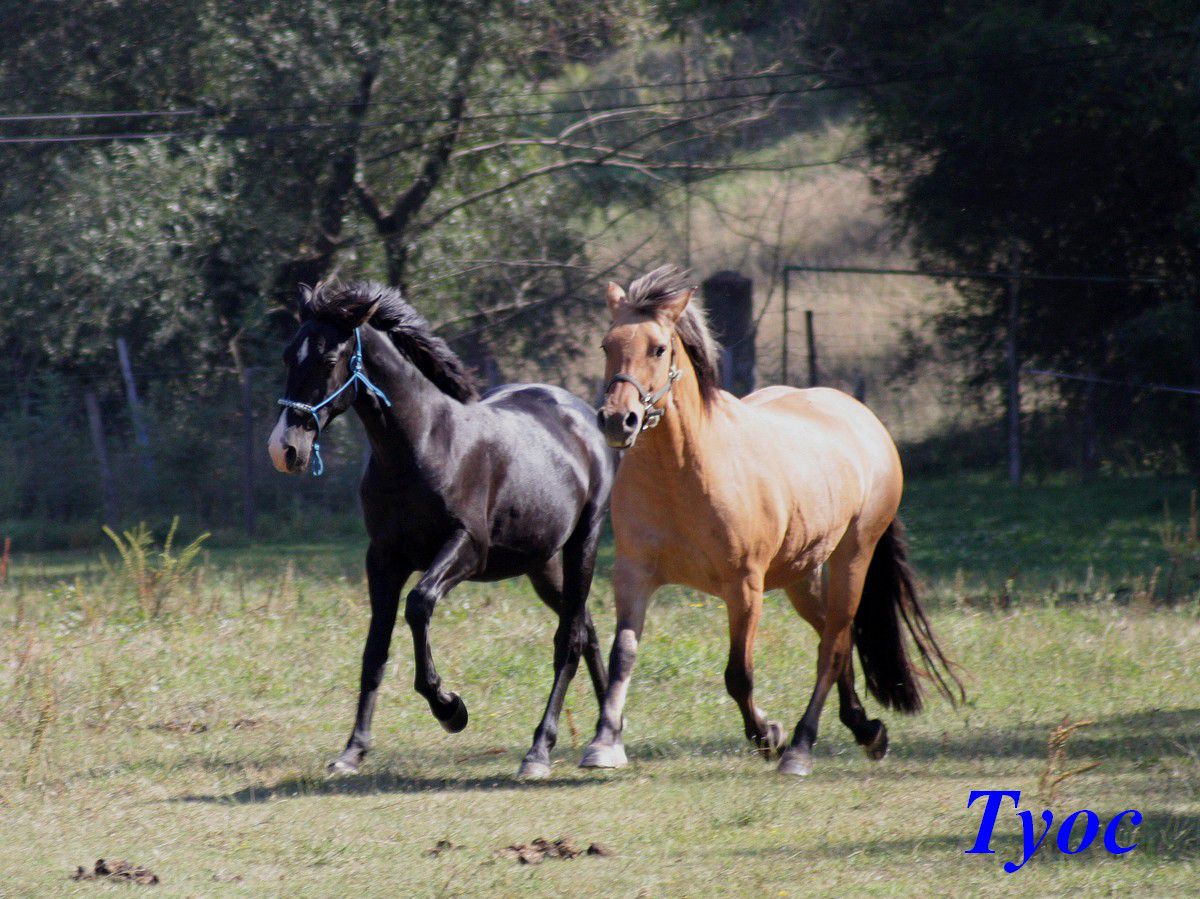 | Dire merci | Bonjour bonjour! Commençons ce topic-fleuve par une petite présentation des protagonistes ![]() Akanto, dit « poulichon », jeune étalon PRE noir né le 19 mars 2010 d’Ebanisto 6 et Nocturna XIII, à l’élevage Rozière. Un "pti jeune" aux multiples adjectifs, dont on retiendra particulièrement celui-ci : «calme ». Posé, réfléchi, c’est un élève modèle, quoique très gourmand. A côté de nos sorties "loisir" (il est labellisé Elite Loisir junior et monté, et on commence le TREC), Akanto commence le dressage de façon un peu plus sérieuse avec un cavalier, et commence à avoir des résultats très encourageants On fera d'ailleurs la finale européenne des MCI en novembre prochain en Belgique! Mais le gros de son emploi du temps, c'est de vivre au pré avec ses juments, une vraie vie de famille... ![]() Ma première jument, c'est Lebrera XXXVI, jument PRE PP née en 1999. Je la connaissais avant Akanto, j'ai failli réserver son poulain 2010, mais les aléas de la vie on fait que.... et puis la chance aidant, j'ai pu la racheter en 2012 car je rêvais d'un poulain d'elle, qui plus-est avec Akanto! Elle est la mère d'Eléio et de Falcon d'Auréa (né le 7 juillet 2015). ![]() Et le petit Falcon, surnommé Bambi ![]() ![]() Vient ensuite Eléa, jument de race Schwarzwalder née en 2007, une race de demi traits allemande (Forêt Noire). Eléa m'a été confiée par sa propriétaire pour une durée indéfinie, c'est une splendide jument, championne de M&A dans sa race et mère de champions également elle est très douce et caline Elle est la mère d'Elégie d'Auréa, née le 13 mai 2014, et de Faline d'Auréa, née le 3 juillet 2015. ![]() La petite Faline, à l'image de sa robe....elle a le feu! ![]() Enfin, Nikita (PRE baie, demi soeur de Lebrera par le père) et sa fille Féérie nous ont rejoint au cours de l'été, pour un poulain avec Akanto en juin 2016 ![]() Sans oublier Vicky, qui nous a quitté brutalement le 12 avril 2015.... Mon premier cheval, que j'ai rencontré 18 ans auparavant, dont j'ai rêvé d'être la propriétaire pendant 8 ans, et ce rêve s'est réalisé, durant les 8 dernières années, il m'a suivi à Lyon, en Alsace, et à Toulouse, où il a fini ses jours, entourés de sa "famille", toujours beau, toujours fier, un cheval exceptionnel, un sacré carafon mais incroyablement gentil et tolérant.... mon « vieux beau » qui me manque.... Lien ![]() Voici donc les chevaux qui composent mon jeune élevage, l'élevage d'Auréa.... à suivre au fil des pages... Lien Message édité le 23/12/15 à 11:57 Message édité le 01/01/16 à 22:03 |