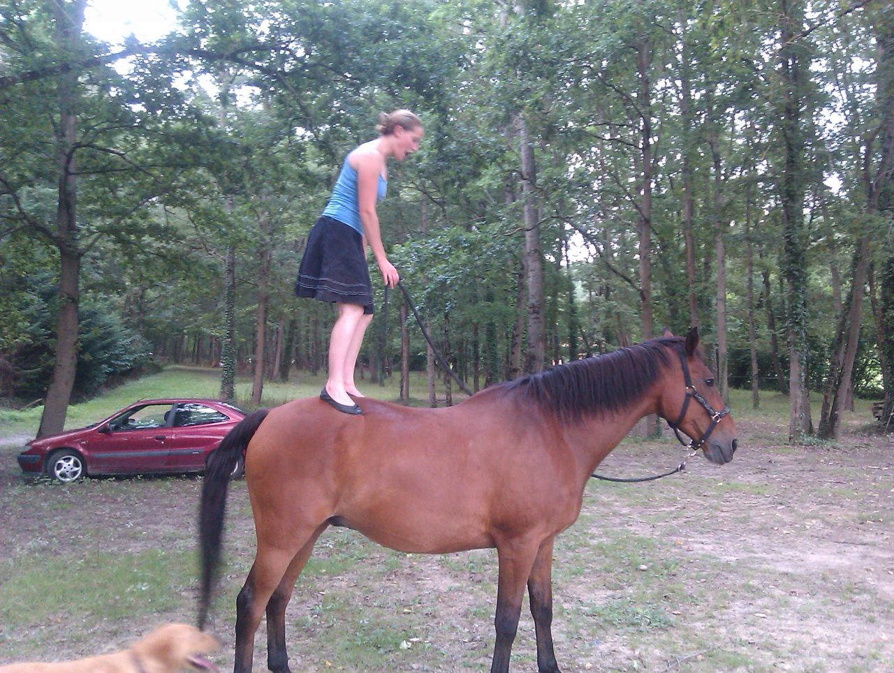 | Dire merci | Et puis le coucher en longe euuuuuuh... Il faut le voir hein J'adore Vicky et l'autre qui passent au galop comme des débiles pendant ce temps, et poulichon pas stressé quoi |
