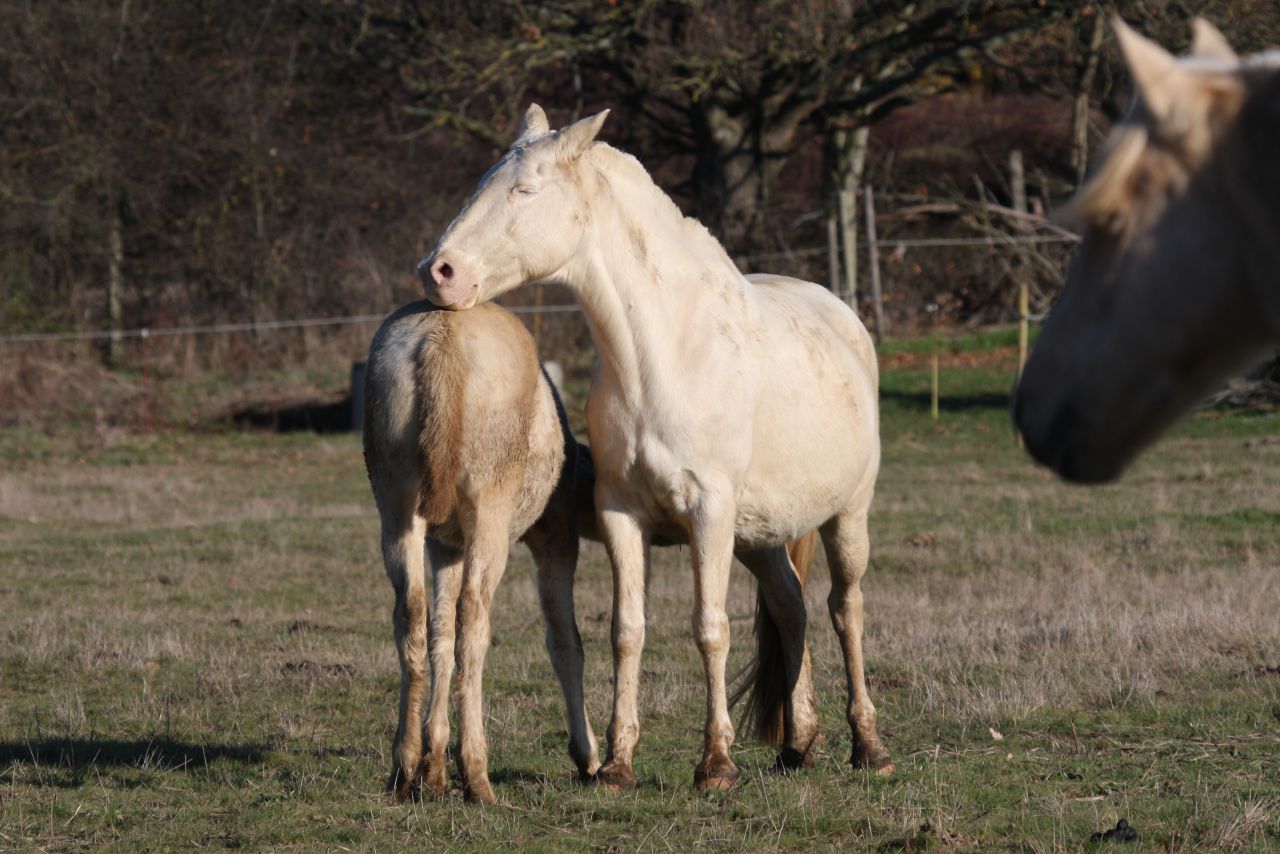 | Dire merci | Premières naissances dans un mois à peu près....Nous avions beaucoup décalés les saillies l'an dernier car Alcazar n'est passé à la confirmation des étalon crêmes qu'en Juin ..... |