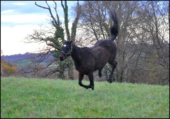 | Dire merci | Ah ca pour avoir la pech ils l'ont ! Un peu trop meme des fois, surtout pour les betises ! Ils sont dans un pré de 4 hectares depuis 2 mois donc ca va il y a encore de l'herbe, mais les dernieres photos, ils sont dans le pré d'as coté qui leur aient innaccessible sans moi . |